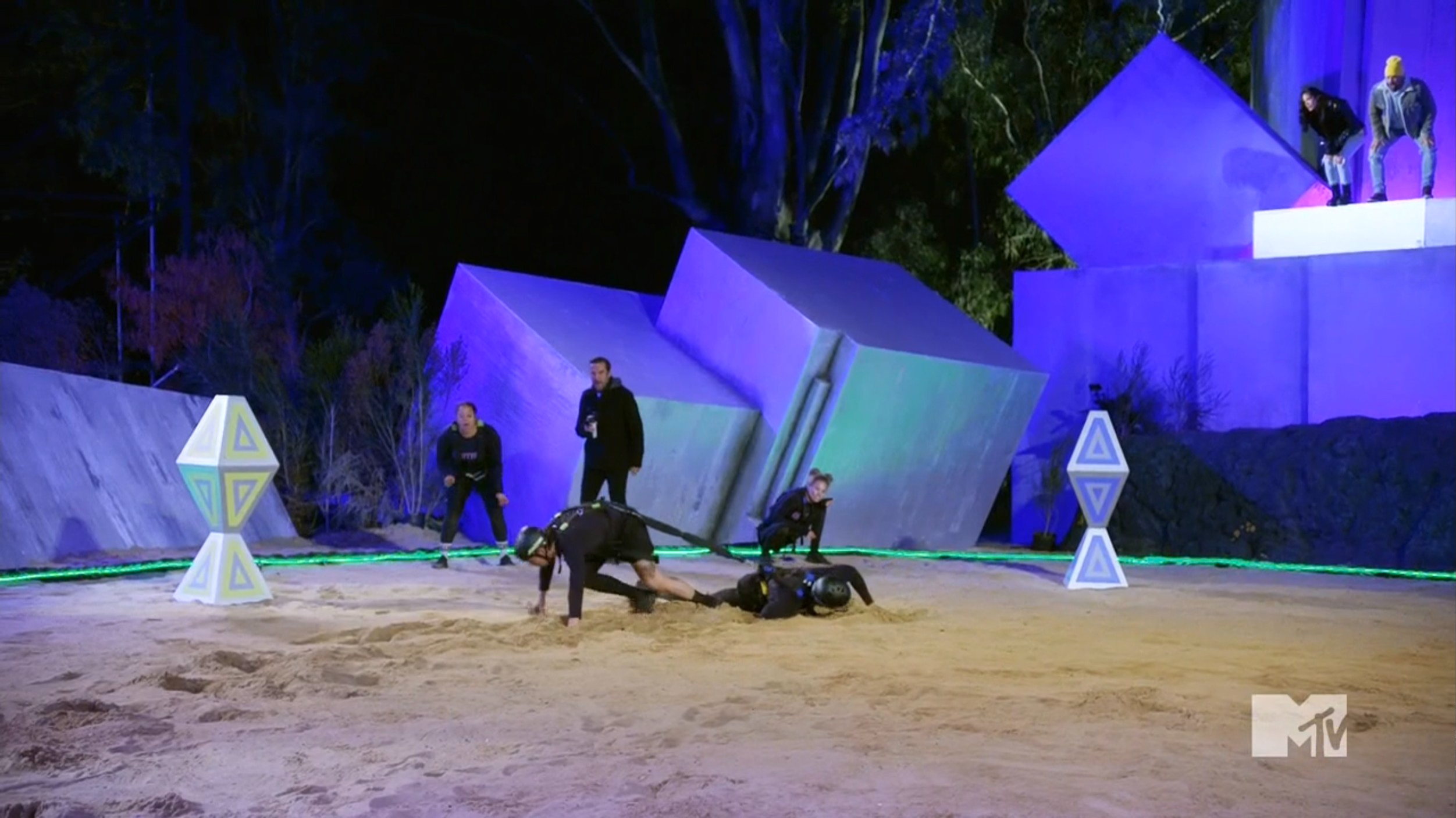 At The Zone, Amber & Chauncey get straight in — no surprise there. Then, they get to the dagger pull. Aneesa goes first, but it’s blank. Then, Horacio pulls the safety dagger. Now, for the real question: Who will the rookie team save? Devin & Tori get saved, because Jordan said Horatio’s name multiple times. This leaves Jordan & Aneesa to face Amber & Chauncey in Rumble Tumble.