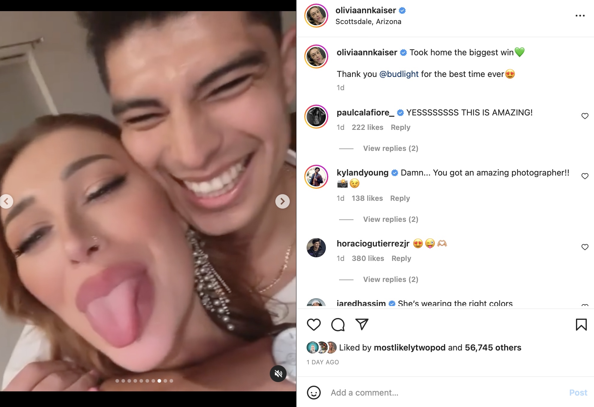 After a Super Bowl party, Olivia said she took home the biggest win, then she proceeded to post multiple photos and videos of herself and Horacio. They were holding hands and getting close, but that’s about as intimate as they got.