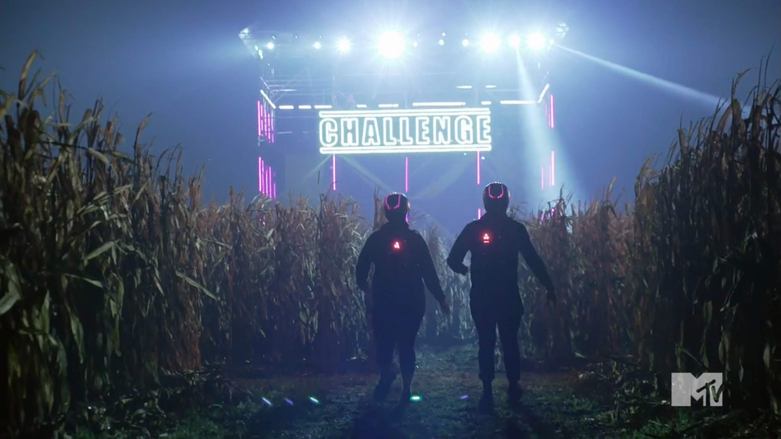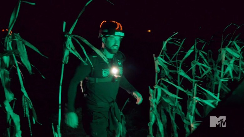The teams take off on another run, and suddenly it’s dark. They finally get to a corn maze, and they’re given the task of choosing a path. Devin & Tori and Bananas & Nany end up at a set of glowing tents, but Jordan & Aneesa chose a different path and arrived at a different set of tents. The teams are confused, then TJ lights up the field and decides to play a twisted game.