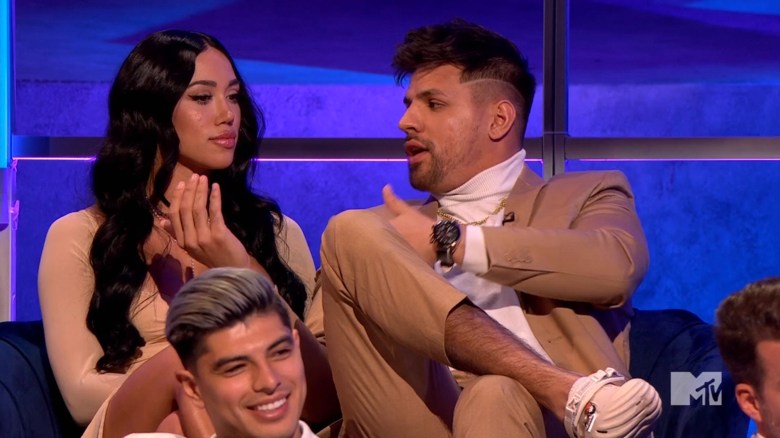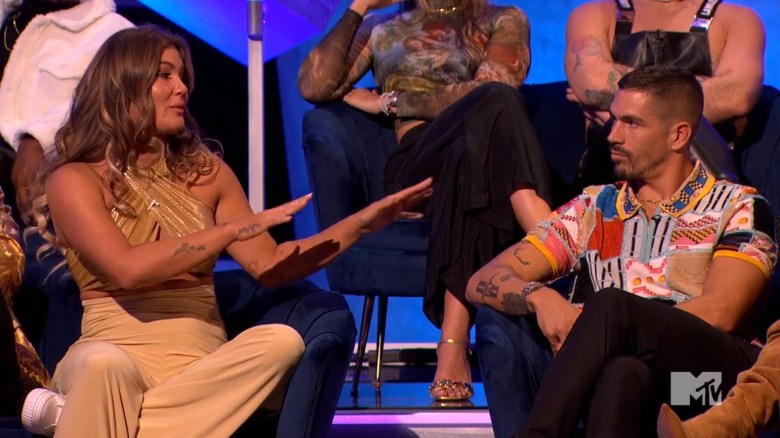 The cast touches on some of the betrayals on the season, most notably, Faysal and Moriah. Moriah gets called out for burning her vote on Faysal, then she gets into an argument with Aneesa. She claims Aneesa was mean to her and said she only survived in the game because she was sleeping with Bananas. Aneesa claims that she’s always nice, but this is Moriah’s first time playing the game and she’s older, so they didn’t connect. Then, Faysal gets called out for adopting a “not my partner, not my problem” mentality after the teams split. Faysal denies this, but Nurys claims she heard him say it, so she told Moriah and warned Moriah to act accordingly.