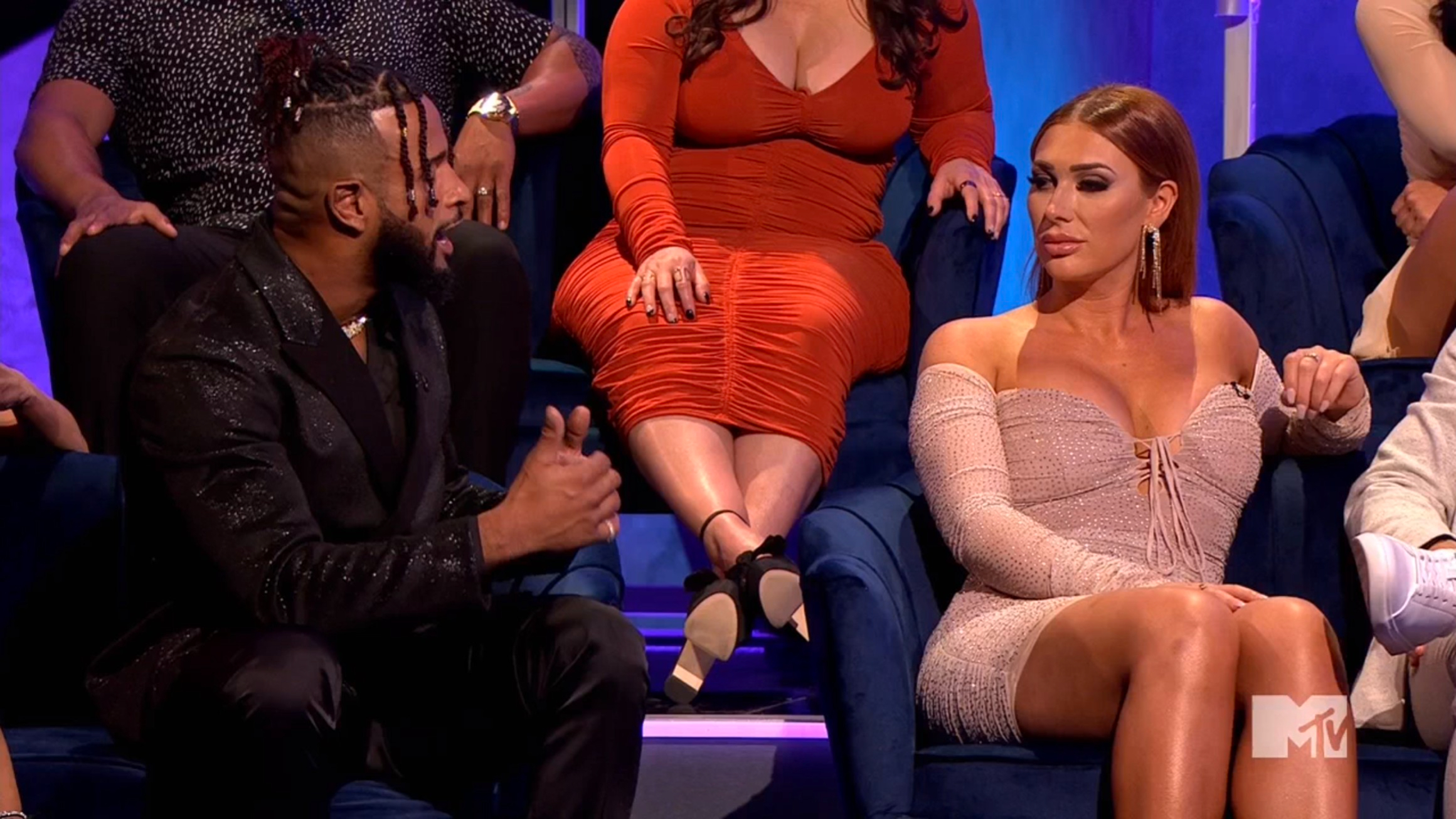 We start with positive news — Amber is pregnant. Then we get a series of questions: Aneesa agrees that Jordan pushed her, but not too hard, and Jakk agreed that Laurel can be abrasive, but he can take it. Then, we see some heat between Johnny and Ravyn. Johnny claims they were never an item, but Ravyn chimes in and claims that he definitely led her on. And she felt lonely in the house while Nurys and Johnny hooked up. Nurys admits she saw Johnny after filming, and she told Johnny about her relationship with Jordan. Ravyn was upset because Nurys was hooking up with multiple people, but Nurys tells her to mind her business.