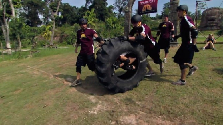 Competitors were essentially bowling in a car and their opponents were standing atop the pins. It’s uncommon for cast members to actually get to drive a car, but in this challenge, they got to be stunt drivers. Plus, this is the type of challenge that can only work toward the end of an individual season when the cast is smaller.