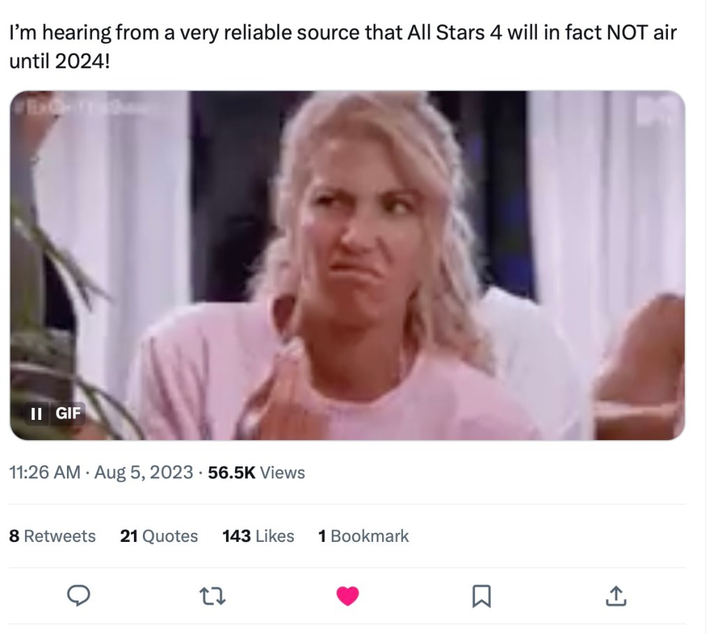 From the sounds of it, Season 39 will follow a similar schedule to Ride or Dies, which started in the fall and stopped airing in Q1 of the following year. All Stars 4 won’t debut until near the end of that season’s run or even after it wraps. This means production will have sat on this footage for about a year before it airs.