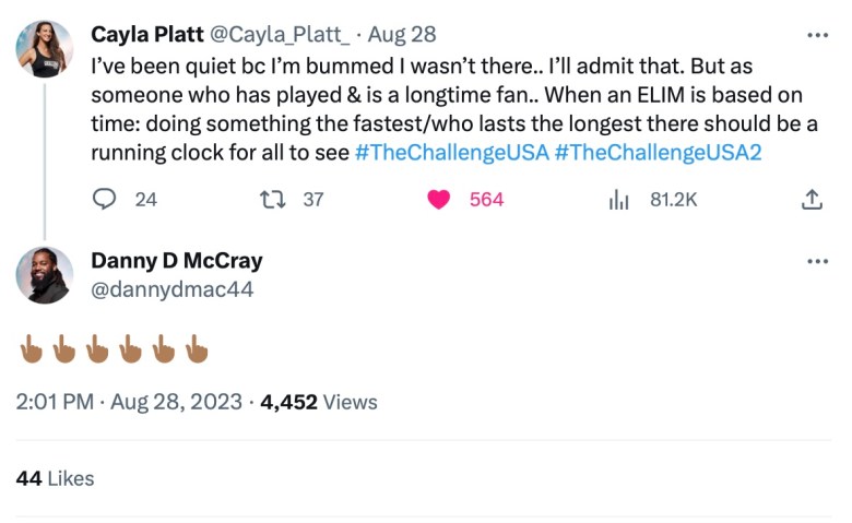 This type of editing made the scene overly dramatic, and it’s ripe for conspiracies. Even cast members from prior Challenge seasons chimed in. Most notably, Cayla from USA 1 felt there should have been a running clock to verify time accuracy, and that season’s winner — Danny — agreed.