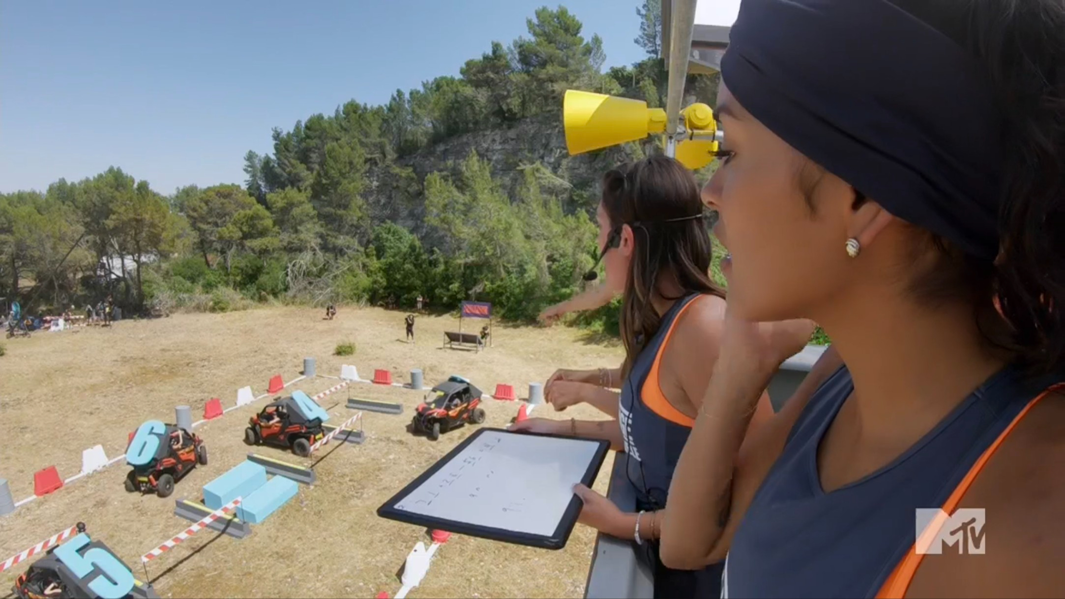 The challenge is called Control Tower, and 16 cast members are drivers and passengers in buggies that have numbers attached to the roof. Some people are equation solvers, and other people are “callers” who yell out commands from a tower so the passengers can move pieces and their buggies to recreate the equation. There are four puzzles, each are worth $10,000, and the cast will get an extra $10,000 if all four are complete in under 30 minutes. Ed and Kyland solve the equations, until the third one. They struggle, and switch Kyland for Jay. Meanwhile, Michele organizes all the buggies as a caller while the other callers mostly echo her. In the end, they manage to solve all four equations and get $50,000.