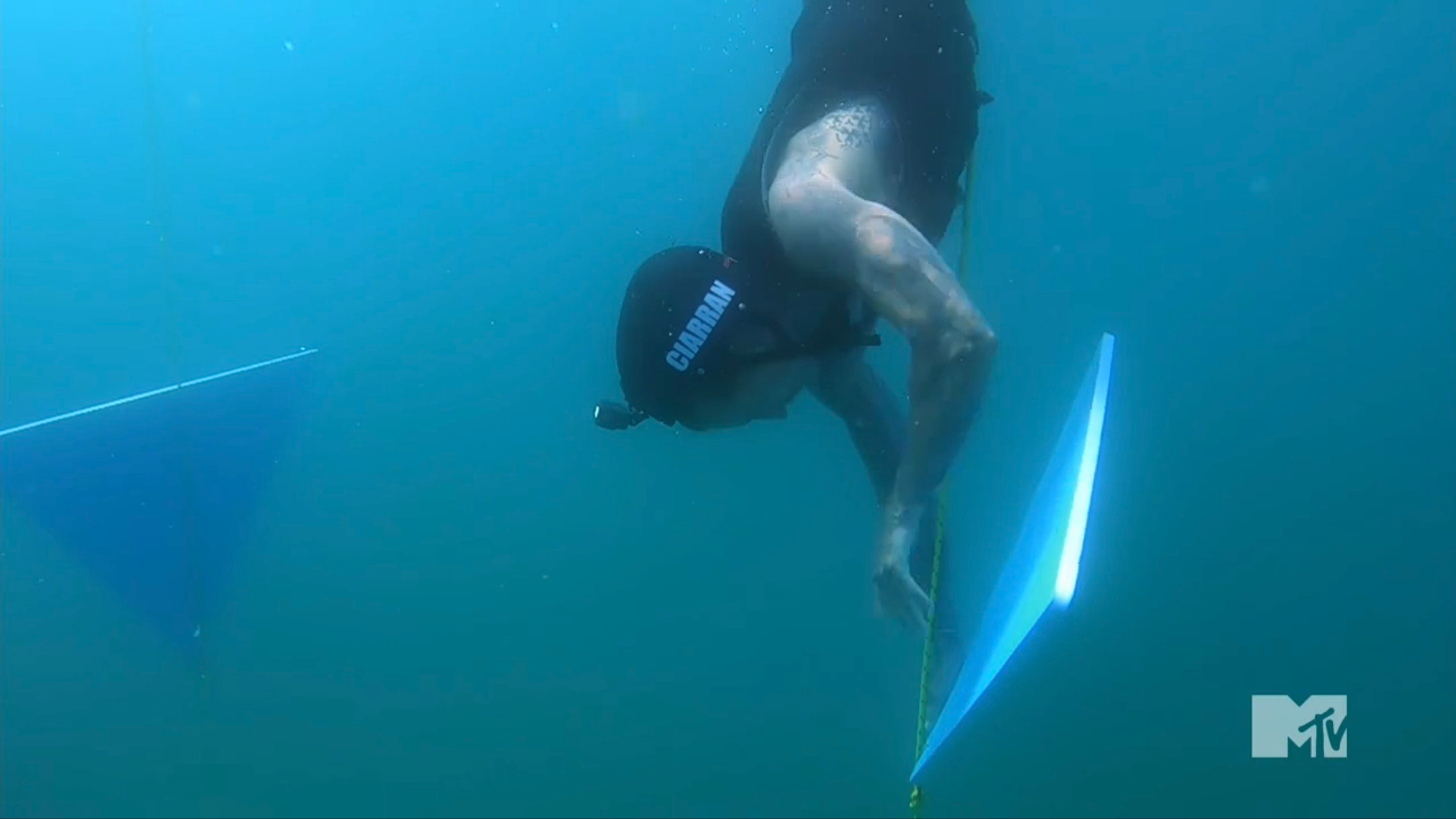 The next challenge is called Under Control, and the cast must swim out to buoys, dive down, and grab puzzle pieces. There are a total of 25 pieces, meaning at least four people must dive twice. Then, they must bring the pieces to five color-coded platforms and use them to solve five puzzles. Each is worth $5,000, but if they complete them all in 15 minutes, the money will be doubled. Some people find this quite easy, but a few people are struggling. Melissa and Nurys are the last two people trying to get their pieces, but Melissa’s motherly instincts kick in. She gets hers, leaving Nurys alone. Ed is able to go back and help Nurys, This allows them to get all of their pieces, and put another $50,000 in the bag.