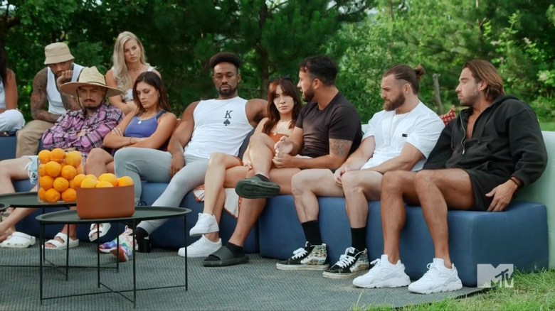 At deliberation, two people have targets: Ravyn and Berna. Ravyn apologizes for causing drama, and Berna apologizes for being a part of drama. The girls are conflicted, so they all draw names from a hat and burn their votes on different men. In the end, all of the men vote for Ravyn, so she’s going into The Arena and she decides to call out Jujuy as her opponent.