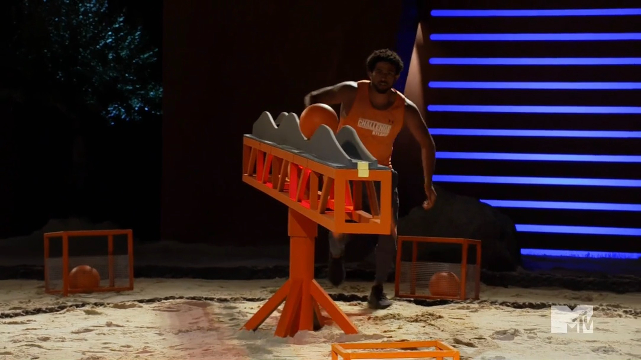 The elimination is called Dirty Deeds, and competitors have to dig for three Xs in the sand. Once they find them, they need to run to deposit them in their basket. The catch: They can tackle their opponent to try to steal an X, essentially making this a Pole Wrestle. There are three heats, and competitors win a heat by scoring two Xs. Jujuy wins the first heat, and there’s no tackling. Ravyn learns she needs to stay closer to her opponent, in case she needs to tackle Jujuy. However, she manages to win the second heat without much of a battle. This makes the third heat the game point. The two girls wrestle, and Ravyn manages to drag Jujuy out of bounds, so she wins the heat and sends Jujuy home.