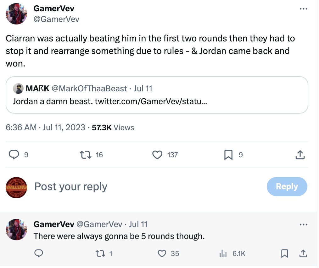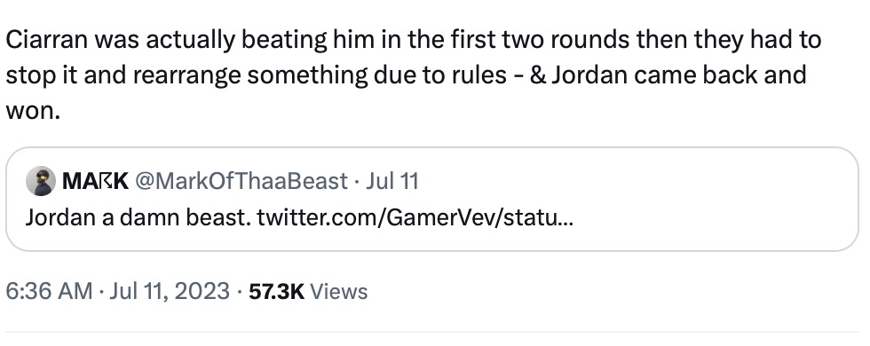 Allegedly, this led Jordan to demand resets and he was losing the elimination at first. Ciarran has also claimed it was a much closer match, and there was more physical contact than we saw on TV.
