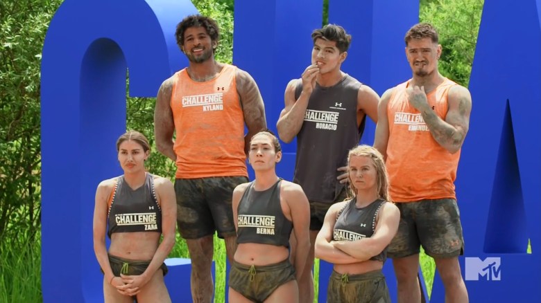 The Challenge is called Bingo Bango, and the group is split into three teams of six or seven. TJ drops a numbered ball, and one player from each team will need to jump into a mud pit and wrestle to get the ball. That number might be on their team’s board, and the first team to get five balls in a row wins. Immediately, Oliva and Jay (who are on the turquoise team) confess that they’ll be taking it easy. Big T and Melissa are on this team, and they don’t want them to have immunity. Many people are aware of this strategy, but it becomes abundantly clear when ball 55 is dropped. The red team doesn’t need that ball, but they send in Nurys to help Berna sabotage Melissa. Eventually, the red team wins, but the blue team also feels like they’ve won because turquoise doesn’t have immunity.