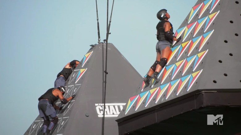 The challenge is called Working the Angles, and teams play in six randomly assigned groups of three (one group of four). There are two giant hanging pyramids, one with a puzzle key and another with the puzzle pieces. Teammates need to swing from one pyramid to another and recreate the pattern, orienting each piece correctly. The first team (Jay, Olivia, and Colleen) goes, and the cast immediately sees how good Jay is at climbing on the structure, and that team sets the pace. The team of four feels like it will have an advantage, but Moriah is scared of heights and damaging her nose job, so she doesn’t contribute at all. But the winners are Horacio, Kyland, and Big T, who now need to send one man into The Arena.