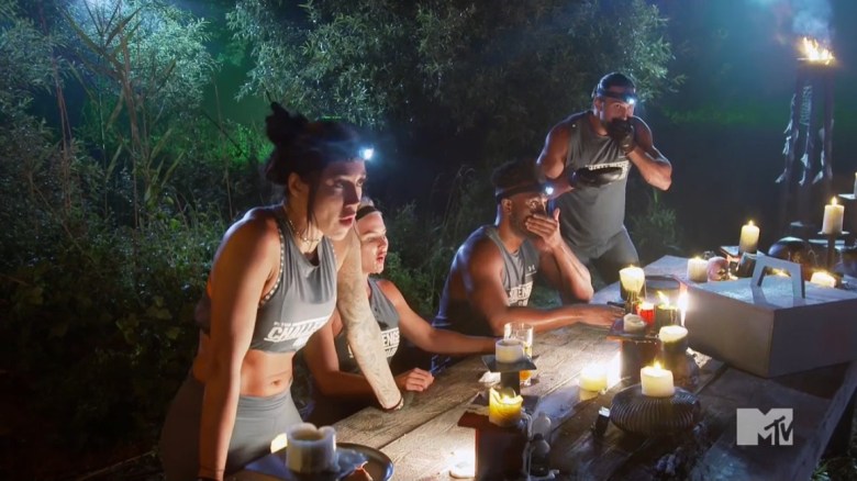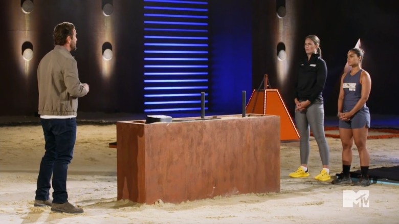 At The Arena, both girls display confidence, until Laurel comes out. It’s Michele’s worst nightmare, because she feels responsible for getting Laurel sent home on Ride or Dies. The whole cast is hoping for Laurel to pull chaos, but Ravyn’s name comes out of the sand. This means Michele is safe, and the two competitors will be playing Chain Reaction.