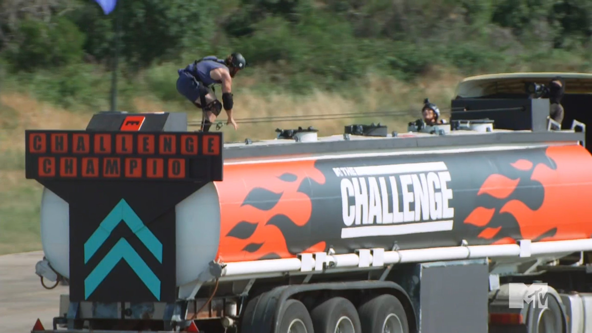A tanker rolls up, and the cast will be playing Getting Tanked. The game is played in teams of four, and three players will need to get inside the tank and retrieve the letters as the truck zigzags down the road. The third person will need to collect the letters from the swimmers and spell the phrase “Challenge Champion” atop the truck. The first team goes with Kyland, Emanuel, Zara, and Moriah. The three people in the tank collect the letters fairly easily, so it seems like the real race will be retrieving the letters and spelling the winning words. Emanuel does a good job, but then the second team goes, and Horacio spends much more time collecting letters. Most people realize that her teammates, Michele and Asaf, are throwing this challenge to ensure Horacio can be nominated into The Arena. Then, the two final teams go, and Ed collects the letters really quickly. This leads his team to victory.