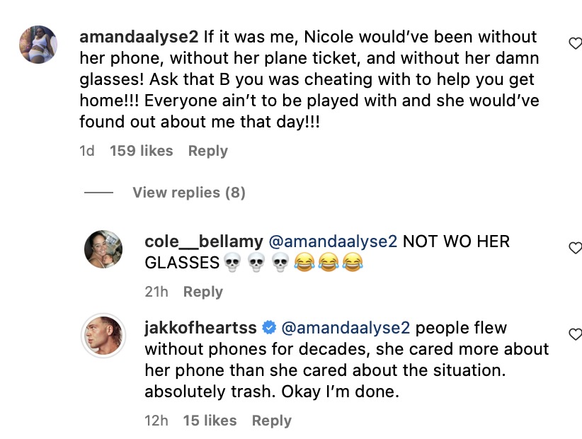 Jakk further supported Laurel by dismissing Nicole’s concerns, stating that people flew for decades without phones.