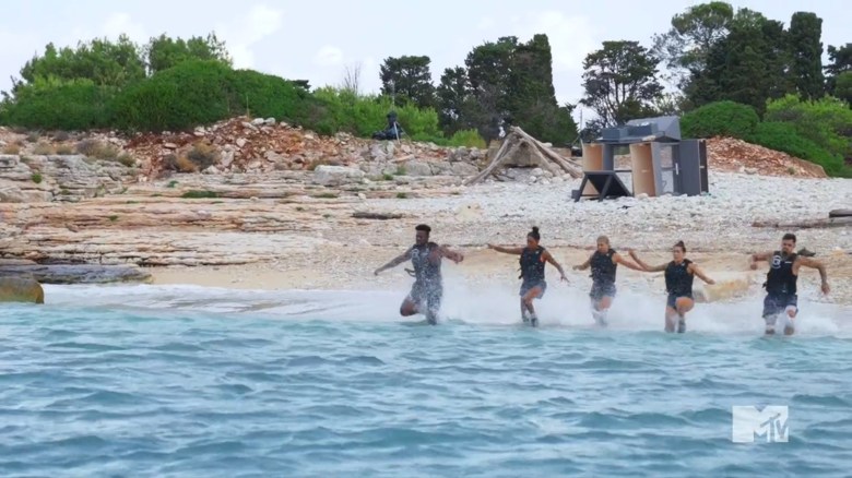 The cast begins their final stage, the one where the winner will be determined. It starts with a 2,000-meter swim to an island and a run to their next tasks. Emanuel completes this portion first, but to stop his time, he needs to chug another one of TJ’s tuna, beet, and mayo smoothies. He does it, then Colleen shows up, then Corey, then Nurys. Berna is the last one there, and she contemplates quitting because she doesn’t like the smoothies. She drinks it anyway — despite tears.