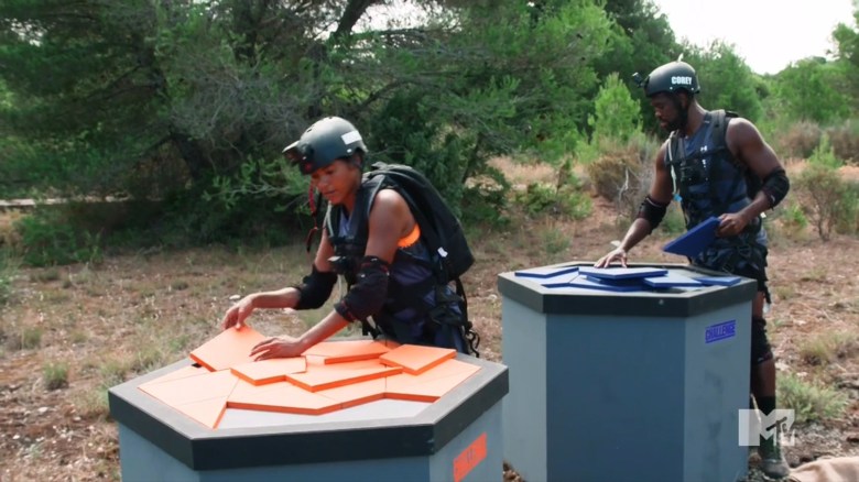 The next checkpoint starts with another one of TJ’s tuna smoothies, then it’s a game of memory. Cast members need to dive under an answer key and memorize colored tiles with other Challenger champions’ names on them. Then, they need to recreate them on a board on the surface. Colleen is a scuba diver, so she’s confident with this task, but then Corey and Nury arrive after the time-out at the tangram. Then, Emanuel completes his memory board, but Colleen is still struggling. She calls for a check, but she’s wrong. Meanwhile, Berna shows up and Corey and Nurys decide to work together. This allows Nurys and Corey to advance, while Colleen and Berna are the last people at the memory board.