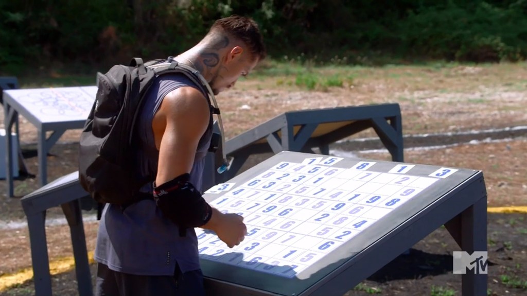 Corey and Emanuel find themselves at the stacking station, and they immediately realize it’s going to require a lot of patience. They take their time and eventually get it done. It’s the sudoku that proves to be the problem for everyone. When Corey and Emanuel get there, they meet Colleen. She has zero flags, but she finally solves the sudoku, making her the first one. Meanwhile, Nurys struggles, so she moves to the stacking competition. While she’s there, Berna completes the sudoku (she probably copied Colleen), and then Nurys realizes the stacking game is too daunting.