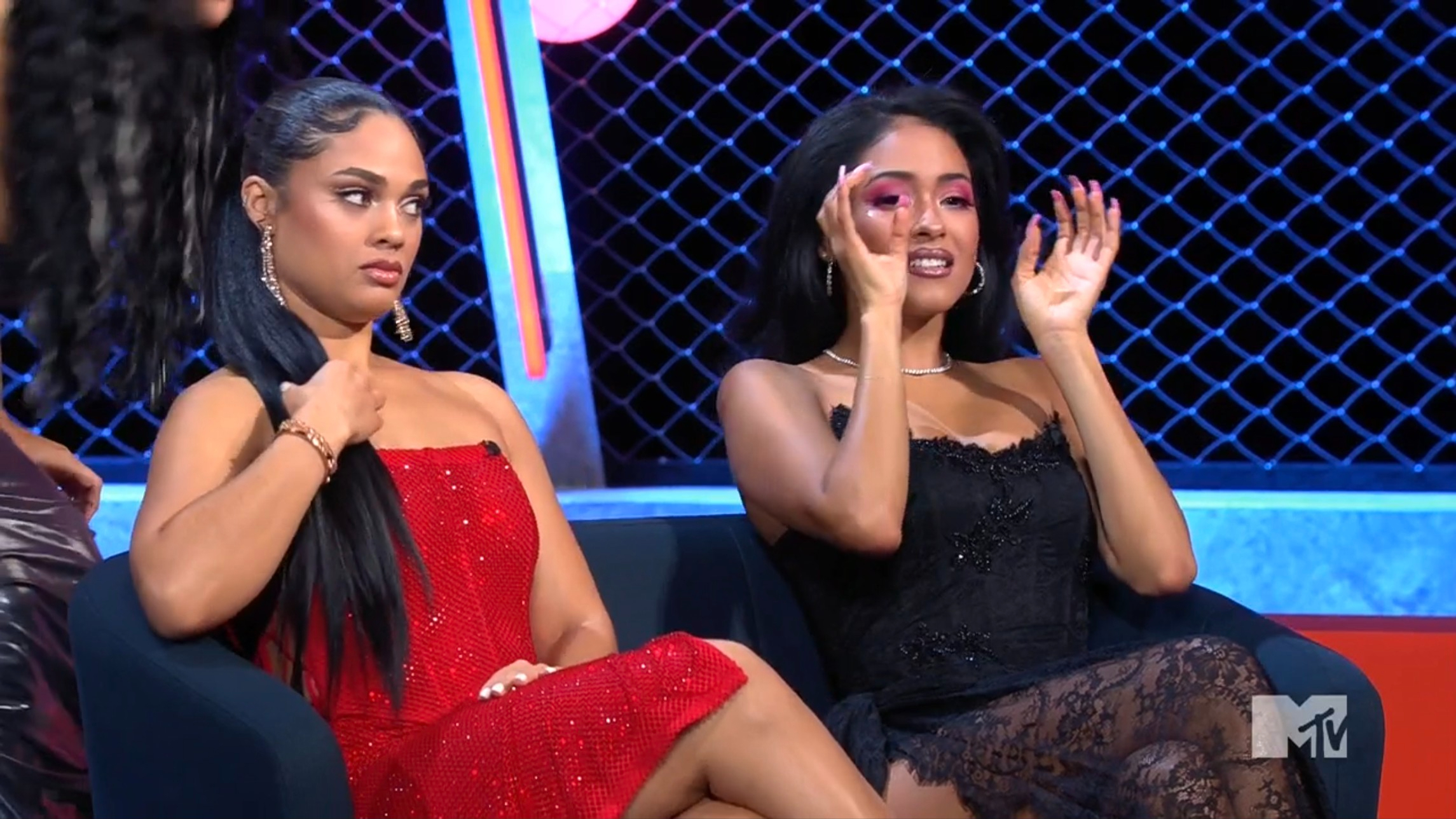As soon as the cast gets out on stage, Nurys starts crying. It’s her first time seeing Olivia since the show, and Horacio wasn’t there since he was filming for Exatlón, a soccer-based reality show. So, Nurys was sitting with Ravyn, who she’s become close with since filming ended.