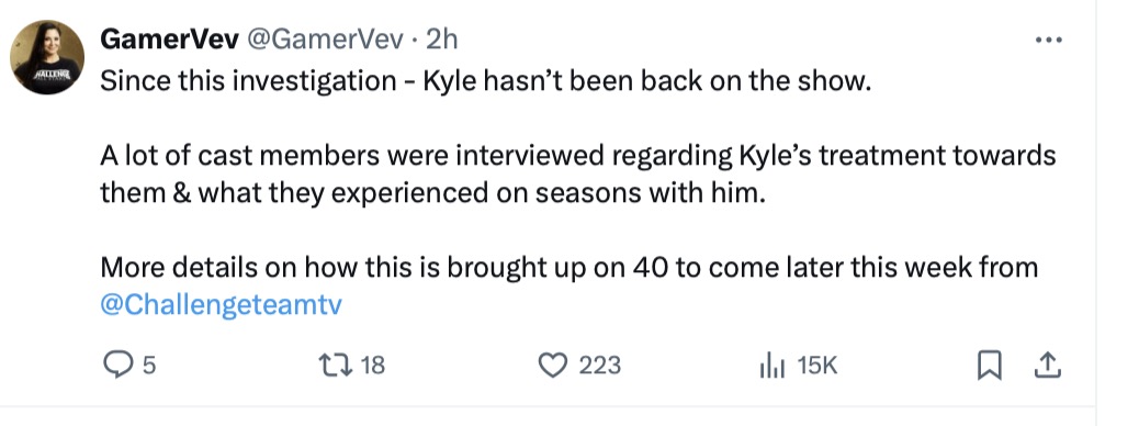 According to spoiler account Gamer, Kyle hasn’t been on the cast because of allegations that he was abusive to female cast members on the show — particularly Cara Maria. Following these accusations, production hasn’t invited him to return as they investigate the claims.