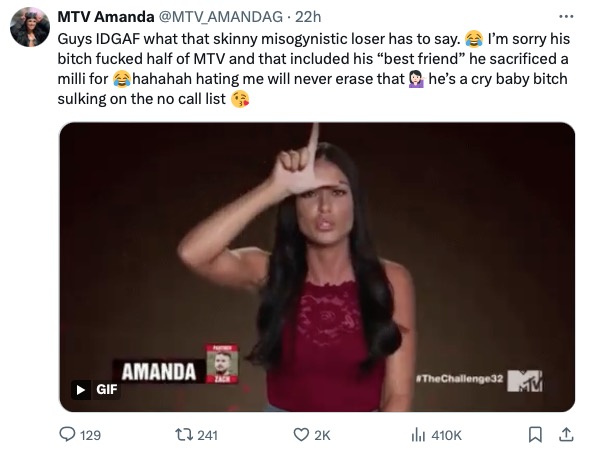 Later, Zach addressed Amanda on his podcast. In his defense, he was reviewing the entire Season 40 cast, but when he discussed Amanda he said, “She shouldn’t be there, she’s trash.” He referenced Amanda as a “seven-time competitor” (a description that was given to her because she never made a Challenge final) and she should be given a participation trophy and be sent home to her kid.