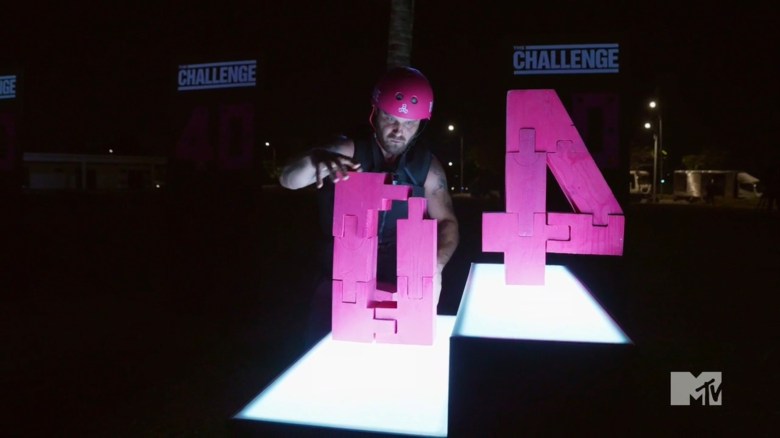 Light It Up has three stages. First, every cast member must assemble a puzzle that creates the number 40. Then, they must take boats and paddle into the water where they will collect 10 lighted buoys corresponding to the color of their era (and jersey). Finally, they will paddle back to shore and put the lights inside their puzzle. The first man and woman from each era to complete this task will earn immunity from elimination. Meanwhile, the last place males and females in each era will be going directly into elimination, and the winners will pick their opponents.