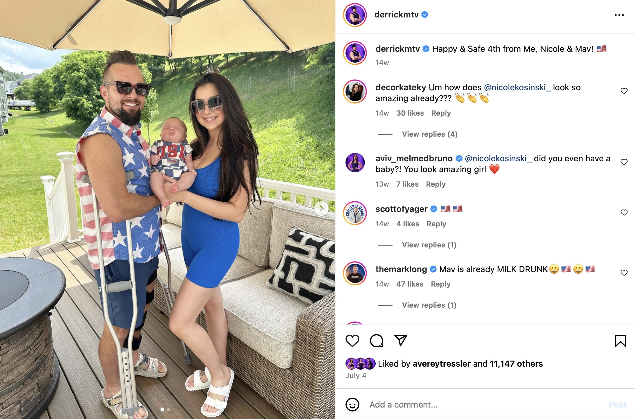 Online, Derrick was pretty quiet about this injury, though some fans noticed he had crutches and leg braces before Battle of the Eras debuted. Derrick had to have surgery in the spring, after he left Vietnam and shortly after his son Maverick was born.