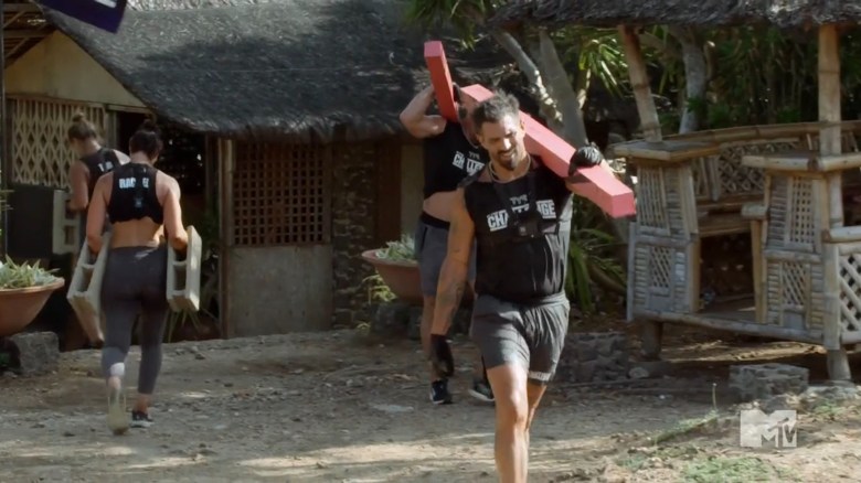 Cara Maria, Jenny, and Rachel are all targets, and the cast arrives at their last challenge of the season. All four men have made the final, but the last-place male in the daily will still be assessed a penalty that will be applied at the final. The game is called Fortress Bricks which requires the cast to run up a Spanish fortress where they’ll find 40 bricks per competitor. They must carry the bricks, two at a time, to their base. In the process, they’ll also bring up 10 planks of wood, which will be used as puzzle pieces. Whoever solves their puzzle the fastest wins. Jenny sets a fast pace for the women, but Michele is worried because heavy lifting isn’t her thing. For the men, Kyland is the front-runner, but Jordan is right behind him. Eventually, Kyland gets all of his planks to the top of the fortress and Jordan has one more lap, but by the time Jordan returns, Kyland hasn’t solved the puzzle.