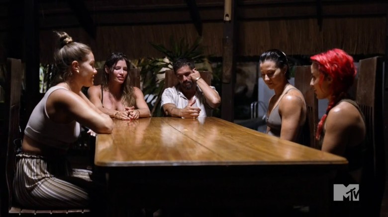 The whole cast is instructed to wear their uniforms to the Arena, but the Philippines Arena isn’t a physical space — it’s in the middle of the ocean. After a boat ride, they encounter another boat, “Sinister,” where the finalists will be staying for the duration of the final. Cara Maria and Tori will have to earn their spot on the boat by playing The Final Elimination. It’s a game of endurance, the two girls will swim into a circle of barrels and will need to tread water for as long as possible. Eventually, a snake joins the two in the circle and scares them, but they keep treading. At the 2-hour mark, TJ makes the girls put their hands up. After another 20 minutes, the girls must put their elbows above water. Both girls are struggling, but Cara Maria starts panicking. The water is getting in her mouth and eventually, she puts her arms down. This eliminates Cara Maria from the game and lets Tori advance to the final.