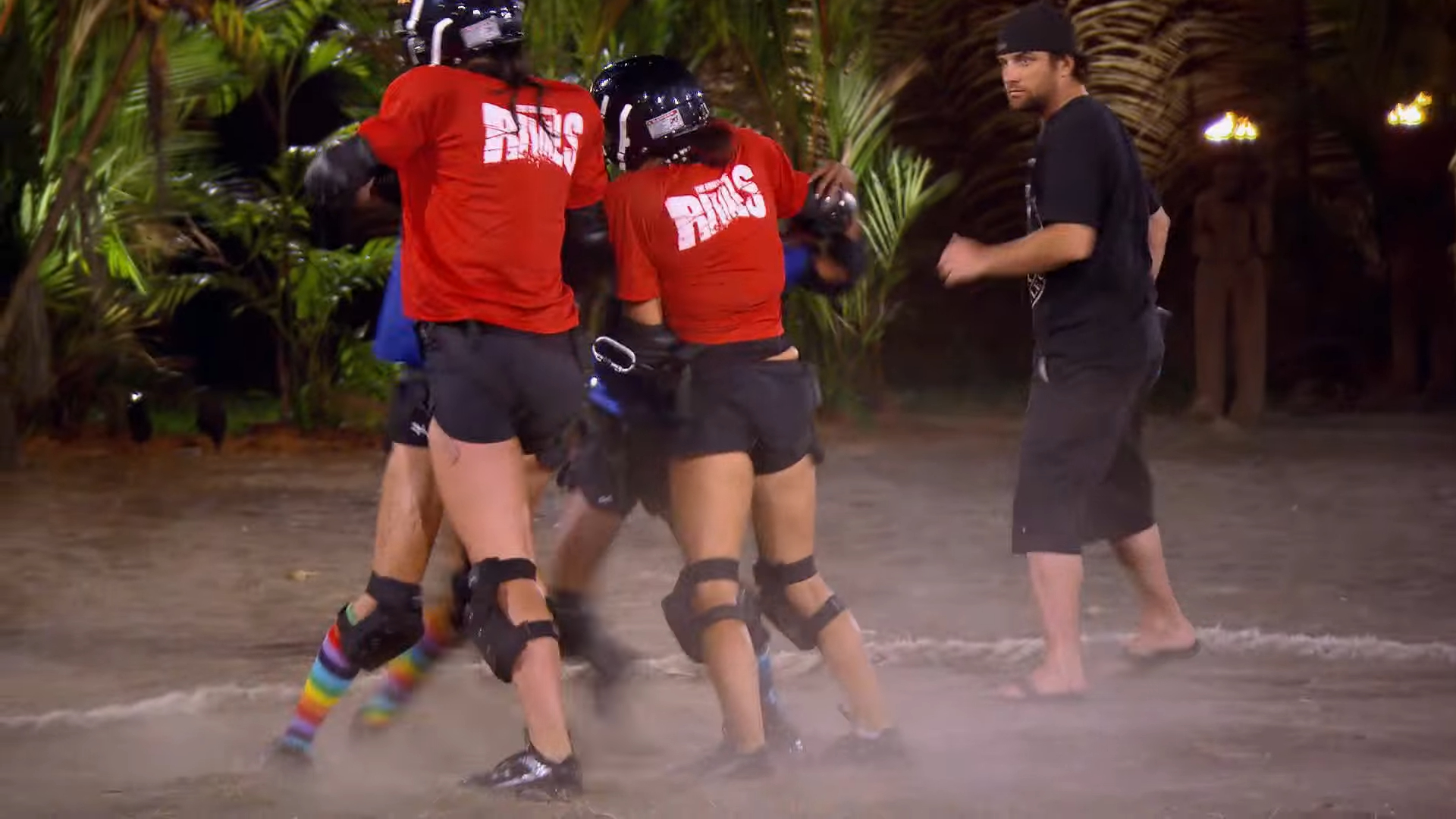 Cara Maria likely benefited from the randomness of a final elimination in the past. On Rivals, directly before the location change (presumably, when equipment was being packed to leave Costa Rica), Cara Maria & Laurel faced Jasmine & Jonna in Blast Off. Not only did this game use little equipment, it was also the only Jungle game that was repeated on the season. And obviously, the Fresh Meat 2 duo had a huge size advantage compared to the Cancun pair.