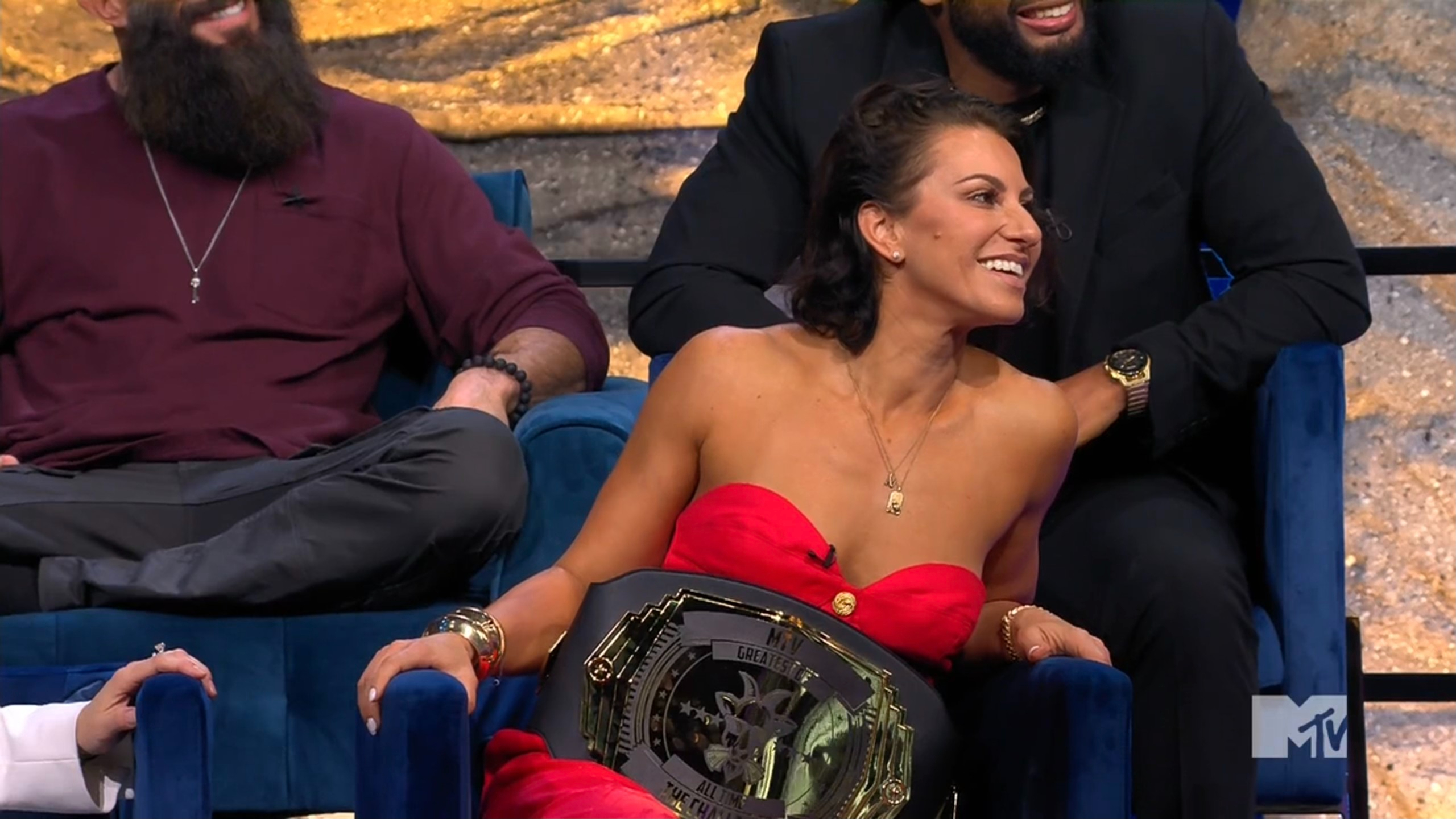 Maria claims that they wanted to settle the debate for Challenge GOATs, so they polled the cast members and the audience at the reunion. Rachel and Jordan win the titles, and the cast sends their praises, especially Laurel who calls Jordan an inspiration for performing so well with one hand. Tori also calls Bananas the GOAT of showmanship, because Bananas’ ego is clearly hurt by not receiving the title.