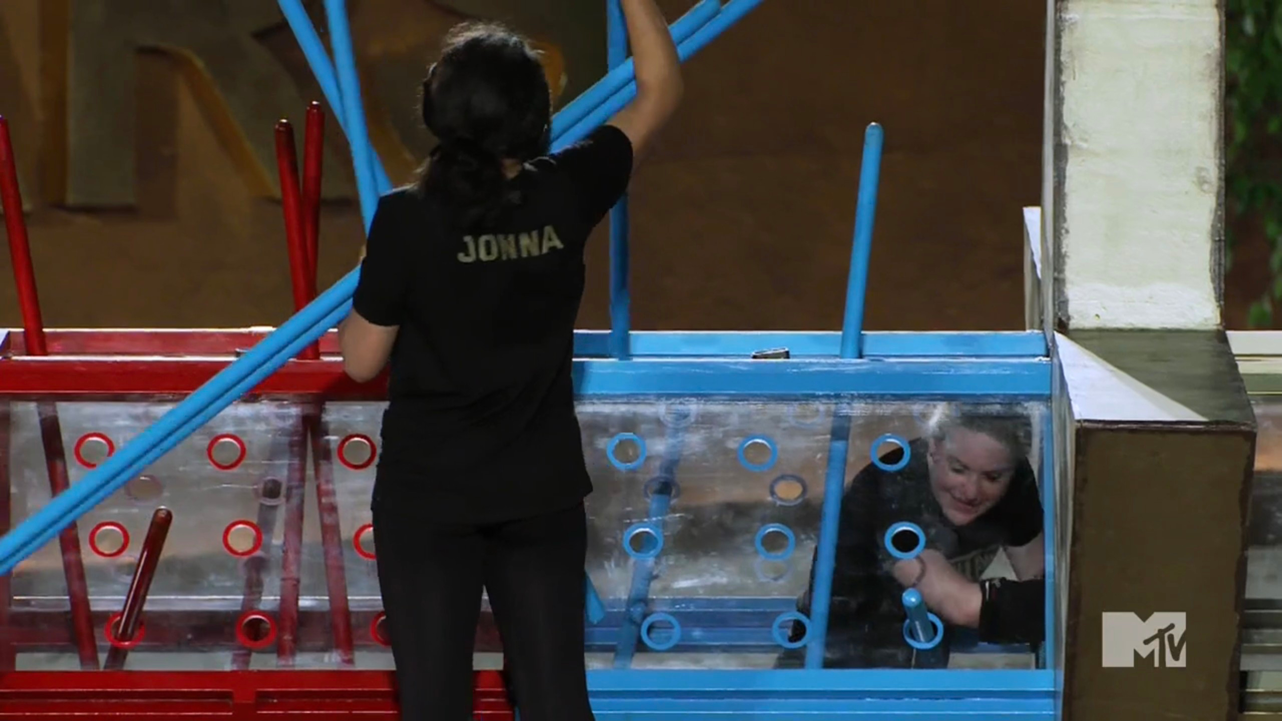 The elimination is called Pole Position and we see the same tube from Cramping Out on Battle of the Eras. It’s a similar game, but it’s a race to complete five laps through the tube. Each round, the teams roll a die and must add more poles to the designed section. Despite not feeling confident, this game seems to cater to Beth & Jonna’s size. Adam & Steve move faster, and they get through the first three laps faster. Once more poles are inserted, the gap starts to close. However, Beth & Jonna don’t move fast enough and they get sent home, and Adam & Steve protect their star.