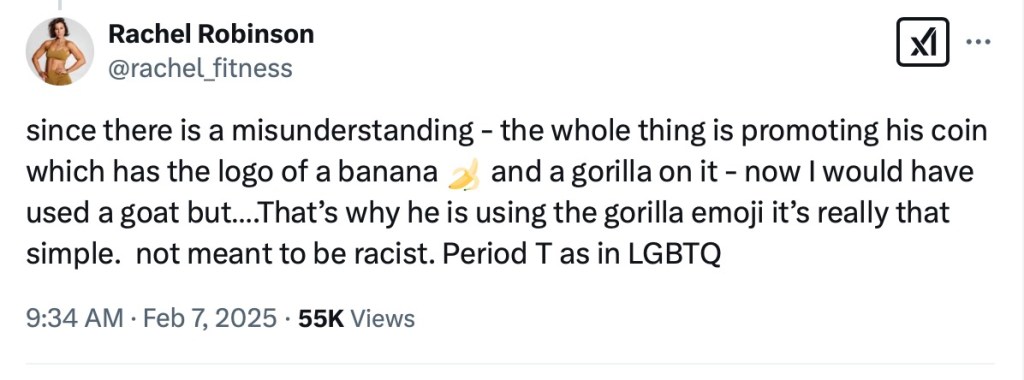 Perhaps one of the friends Bananas spoke to was Rachel Robinson, because she stated that the gorilla emoji was an oversight on Bananas’ part (Receipt 4). But, some fans seem to think her statement confirms Bananas was behind the offending tweet, not a PR agency.
