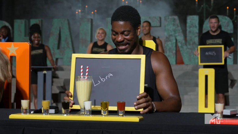 The cast arrives to a long table with many chairs, and they’re playing Sunday Funday. Every team has a vanilla milkshake in front of them, but they’re going to add more ingredients. It’s essentially the Match Game, but if teams don’t match their questions correctly they need to add a shot of a gross (but recognizable) ingredient like ketchup, vinegar, or mayonnaise. The questions range from zodiac signs to identify the least trustworthy team in the house. Frank & Sam get called out for being untrustworthy and physically weak, but they’re in sync until Sam needs to identify her biggest weakness. This forces them to add durian, which took Frank out of Rivals 2, but it seems he’s overcome his fear. Frank & Sam win the milkshake sucking contest, giving them the power to shake up the game.