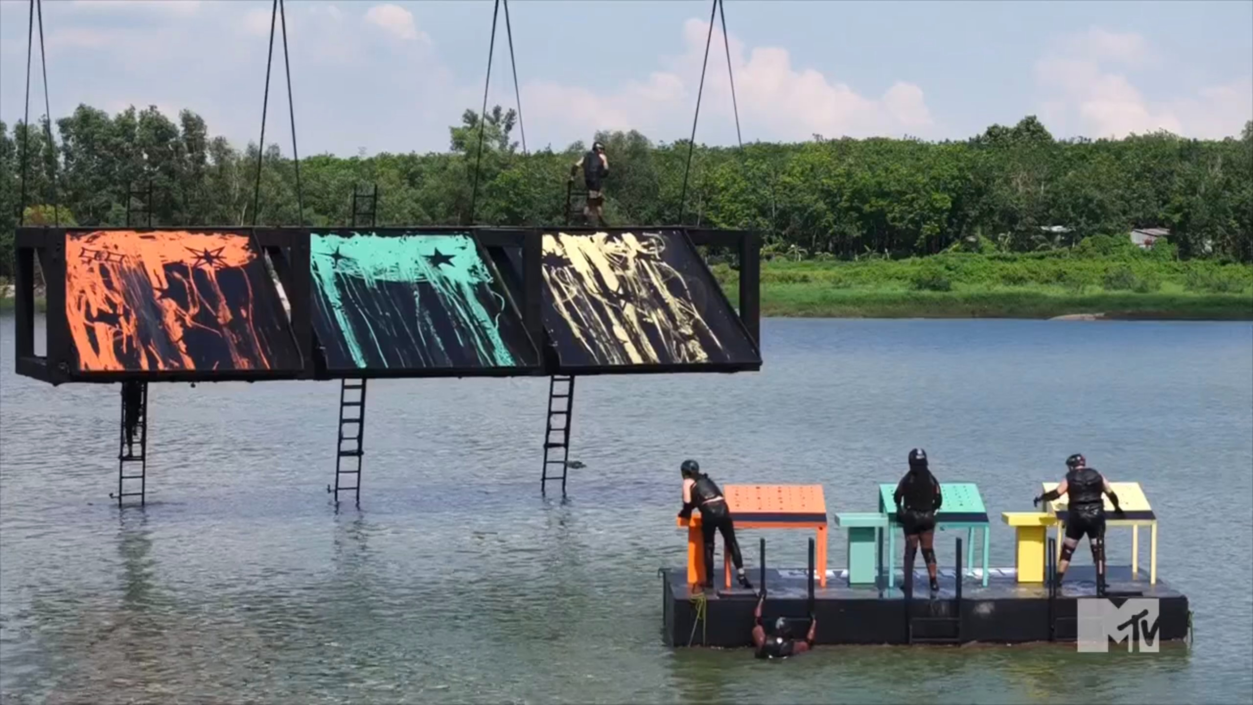 The elimination game starts with Dario & Ashley stumbling and getting time penalties for touching the sand, but that’s not a huge deal because Corey & Big T do the same thing. The platform proves to be quite difficult to maneuver, and Corey & Big T seem to struggle to keep their stars on it. Dario & Ashley seem to get their stride until all their stars fall off. Eventually, it becomes a stacking race, but Big T & Corey knock their tower down. Ashley & Dario keep their composure, win, and protect their star. But, Big T & Corey confirm that they’re leaving as friends, not Rivals.