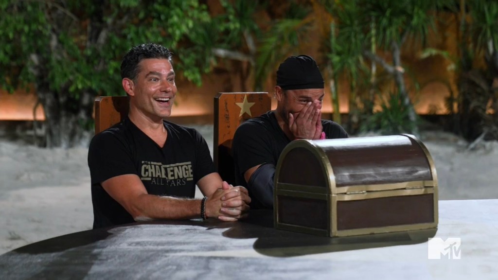 The cast goes out to the bar, and while Turbo is feeding fish, Shane and Adam revisit All Stars 4. Adam claims he doesn’t know why Steve took his star last season, so he talks to Steve and tries to get closure. Steve doesn’t really give an apology because he wouldn’t do things differently if he could redo them, but he also says he felt like he had “no other choice.” Adam leaves the conversation just as confused as he was when he entered it, but he also recognizes the All Stars 4 feud led to the All Stars Rivals pairing.