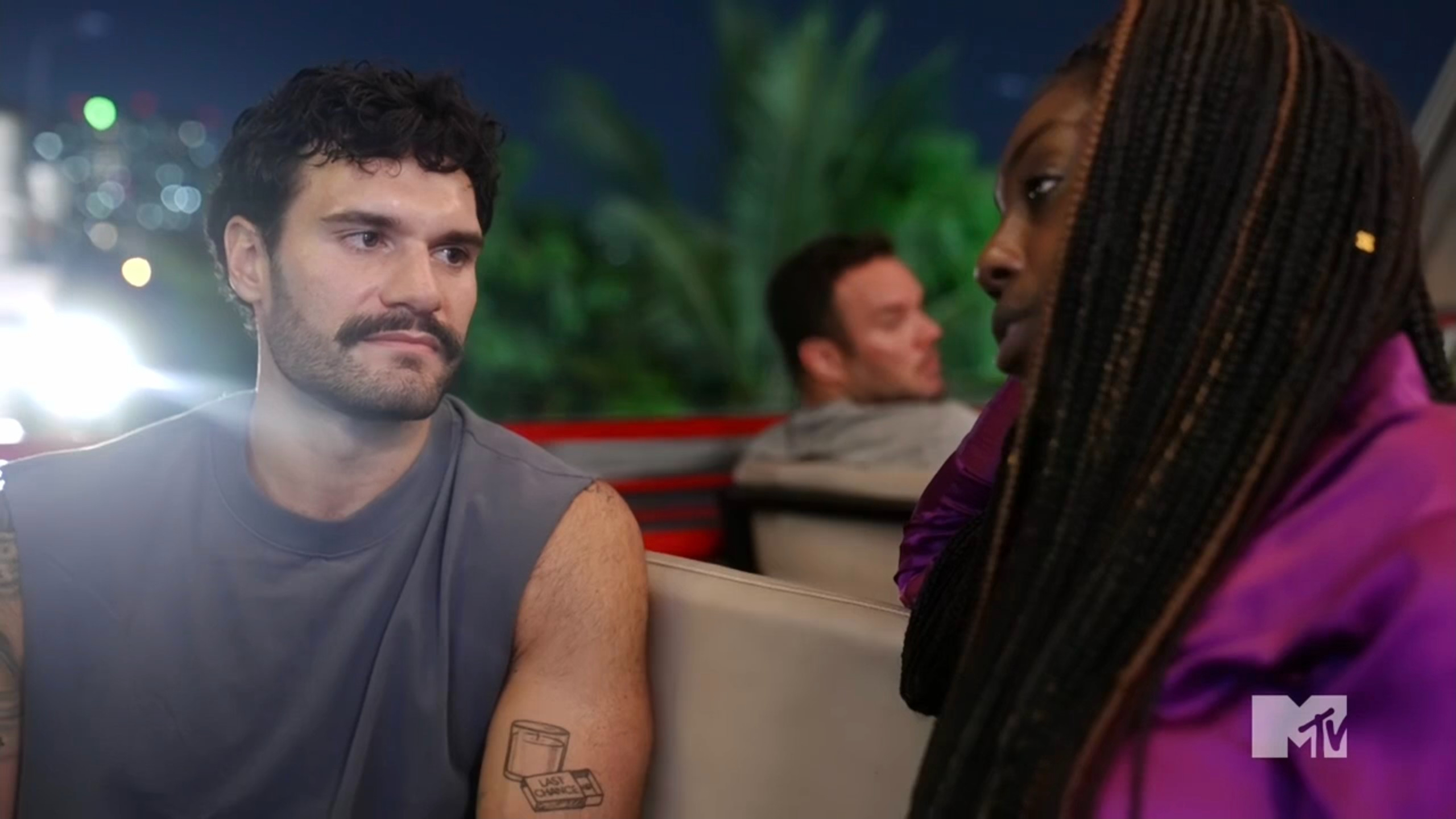 The cast goes out to the bar, and while Turbo is feeding fish, Shane and Adam revisit All Stars 4. Adam claims he doesn’t know why Steve took his star last season, so he talks to Steve and tries to get closure. Steve doesn’t really give an apology because he wouldn’t do things differently if he could redo them, but he also says he felt like he had “no other choice.” Adam leaves the conversation just as confused as he was when he entered it, but he also recognizes the All Stars 4 feud led to the All Stars Rivals pairing.