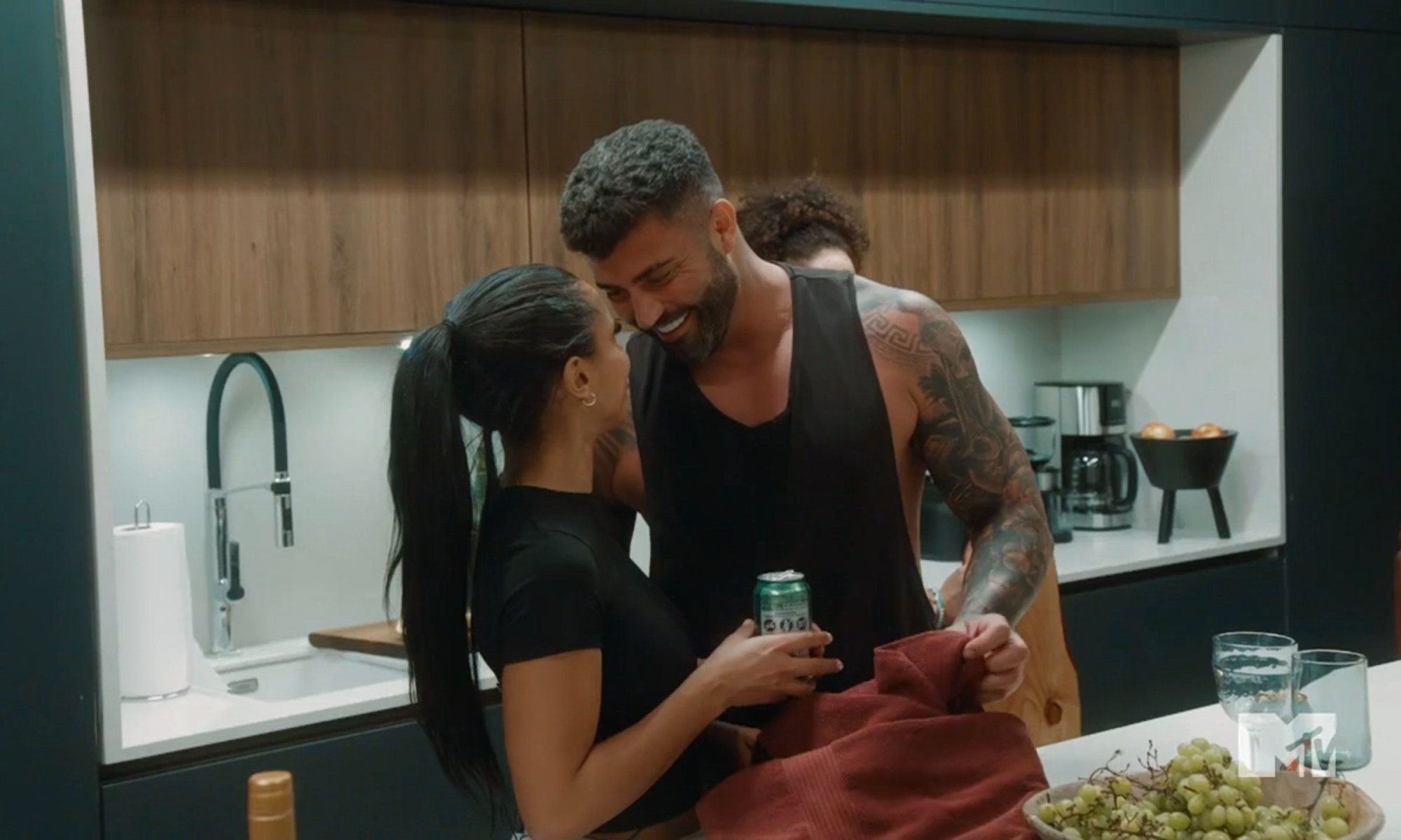 Izzy claims to be an athlete, a hockey player, and a trainer — she even did a few puzzles to prepare for The Challenge. She’s from Too Hot to Handle and Perfect Match, and she might not be fully detached from the dating world. She quickly catches Rogan’s attention — so he “polidicks” with her by making out in the kitchen.