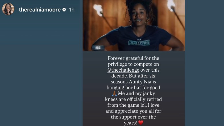 When Nia departed from Vets & New Threats, she expressed her disappointment for leaving for a medical reason. She said she’d be back because she didn’t want to end her Challenge career on such an unsatisfying note.