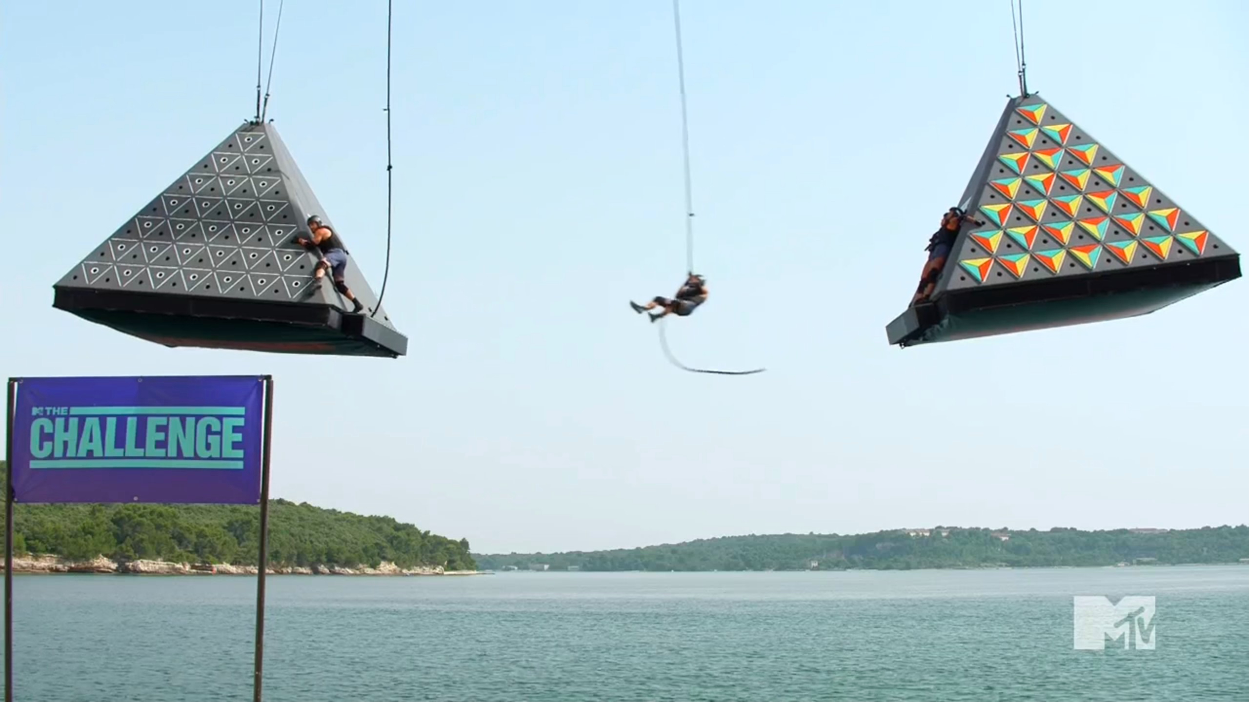 At first glance, this appeared to be a heights over water challenge, and it was probably the coolest visual this low-budget season gave us. Instead, it was just a task to recreate a puzzle key across two pyramids. The only extra element was swinging from one platform to another, but only a few people had to do that. Many competitors just stayed on the first platform because they were afraid to fall in the water or damage their nose jobs.