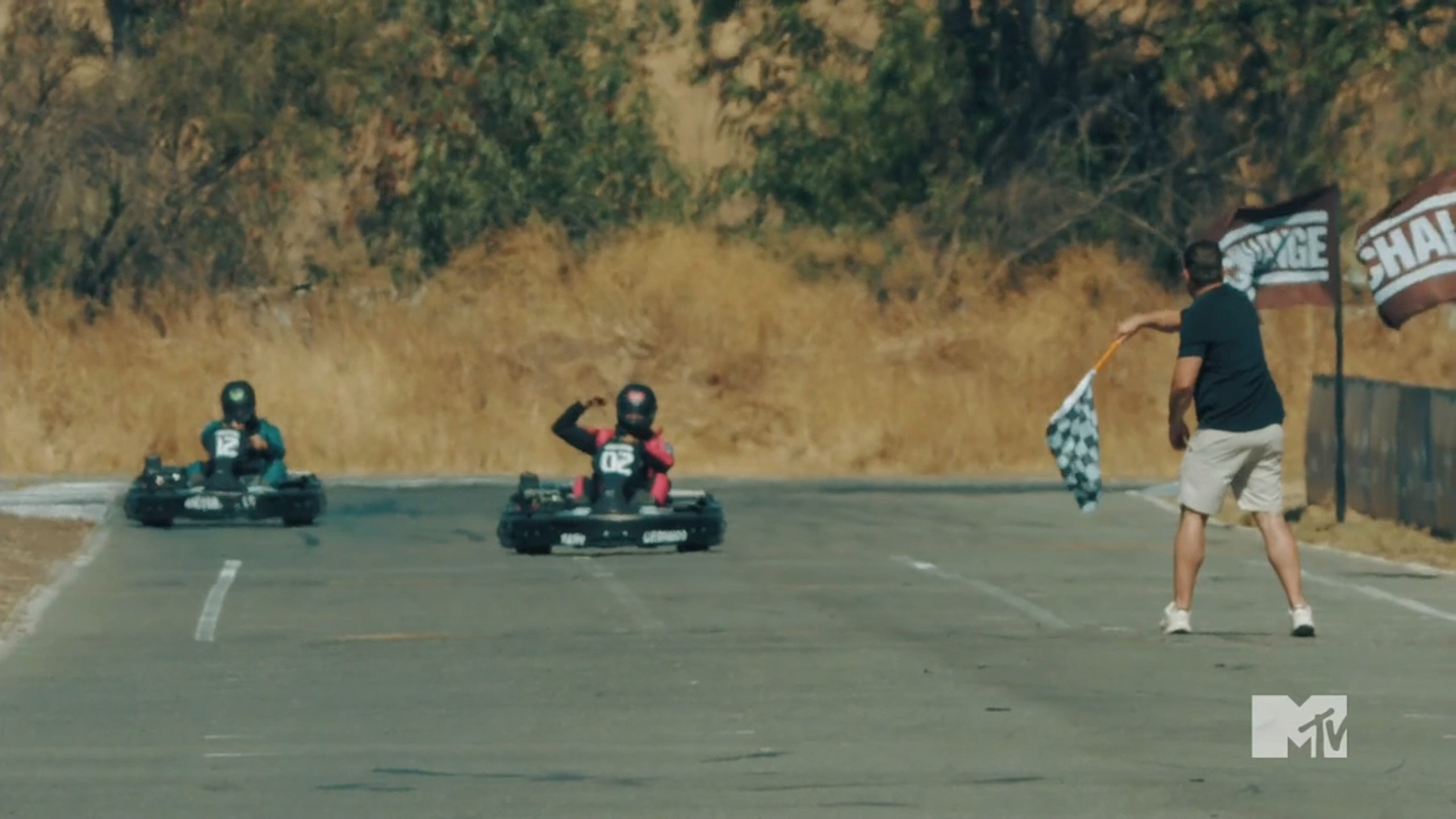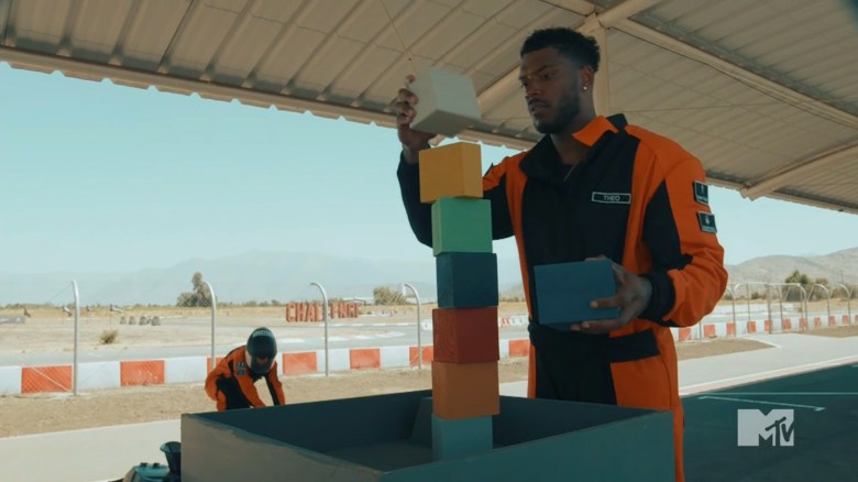 According to TJ, the cast is in the first ever Challenge grand prix. Competitors are playing Drive Me Crazy, and they’re racing go karts, but of course there are puzzles, four to be exact. One teammate will race five laps around the track and park in their designated space. This will give their partner five minutes to work on the puzzle, but if the puzzle isn’t completed in that time, the driver can take five more laps for five more minutes of working time (there’s a cap at 15 laps/ 15 minutes). Teammates will alternate the driver/solver positions until all puzzles are finished. Then, they will take a victory lap and stop their time. In the first lap, Theo and Cedric are the pace-setters while CT is lagging behind everyone. Luckily, Aneesa makes up time at the puzzle. At the second puzzle, many teams struggle — including Theo and Ashley, who lose their lead. This give CT & Aneesa an opportunity to make up time and get in the lead after the third puzzle.