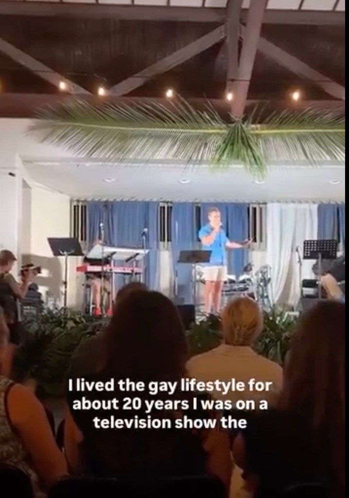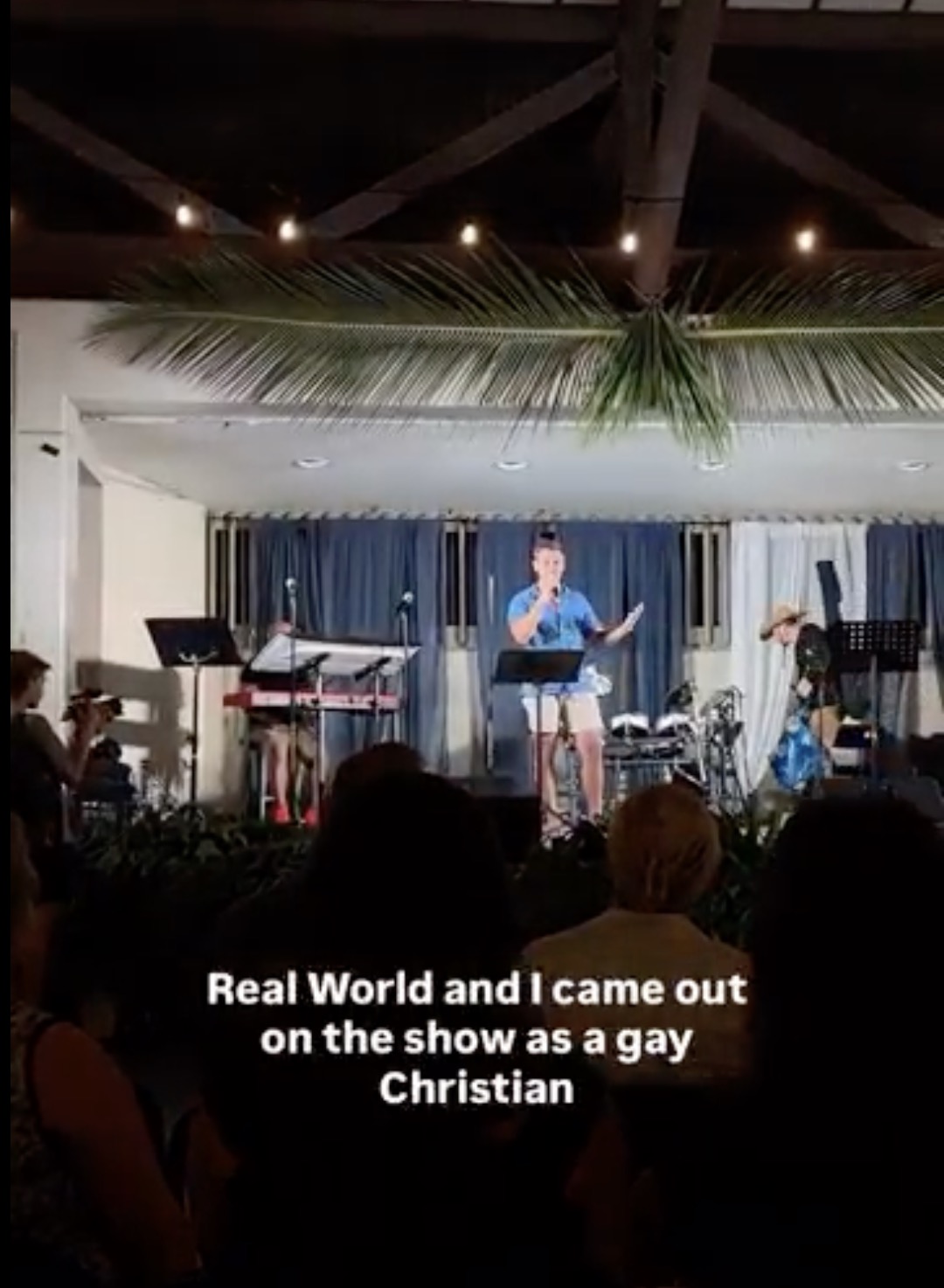 In the clip, Davis seems to be preaching as a worship leader. He discusses that he lived the “gay lifestyle” for 20 years and mentions his appearance on The Real World. Then, he says God pulled him out of that lifestyle and describes the dreams he had that helped him reach this conclusion.
