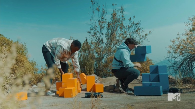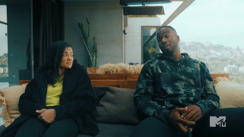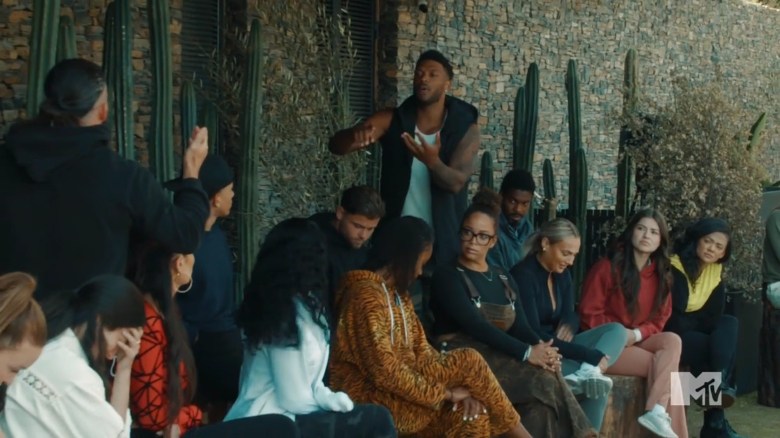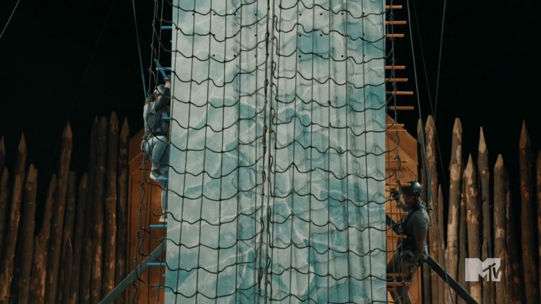 The cast arrives at The Arena and they see a cargo net and climbing wall to play Pull It Together. In this game, one partner will climb the cargo net to retrieve pegs and release them so their teammate can use them. The other competitor will use all of the pegs to build a climbing wall, then they’ll climb it and hit a buzzer. When TJ sounds the horn, the girls head to the cargo net and are about neck-and-neck releasing the pegs. As Michaela points out, this means Gabe’s fate is ultimately in his own hands, because Jonna performed just as well as Aviv. Once the men start putting in the pegs, Yeremi is having a field day. He loves climbing, but Gabe feels uncomfortable. His feet are too big to stand on the pegs, and he can’t get too close to the wall. This causes him to fall a few times before he can place pegs. As Jonna watches Gabe, she starts realizing she’s doomed. Yeremi is moving faster, and eventually, he places his final peg, securing the win for himself and Aviv.