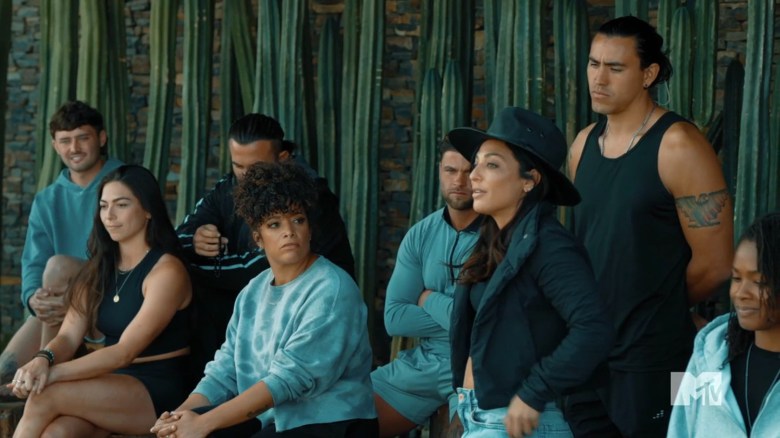 At the nomination ceremony, nobody stakes a claim, so we get to the vote, and it’s pretty simple. Four teams vote for Aneesa & Jake, and Aneesa & Jake vote for Turbo & Sydney. Aviv makes it a point to wish Aneesa good luck, because she wants to support Aneesa, even though they have different strategies in the game. Then, we cue a montage of Aneesa saying she’s been in many Arenas in her Challenge career.