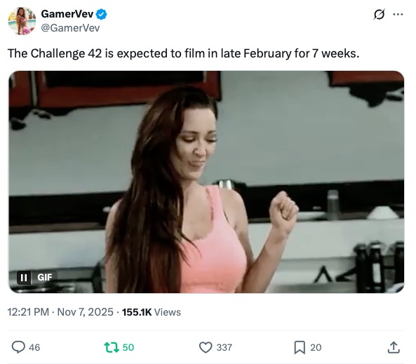It looks like season 42 has the green light. According to spoiler account Gamer, the next Challenge season is slated to film in February and last just seven weeks.