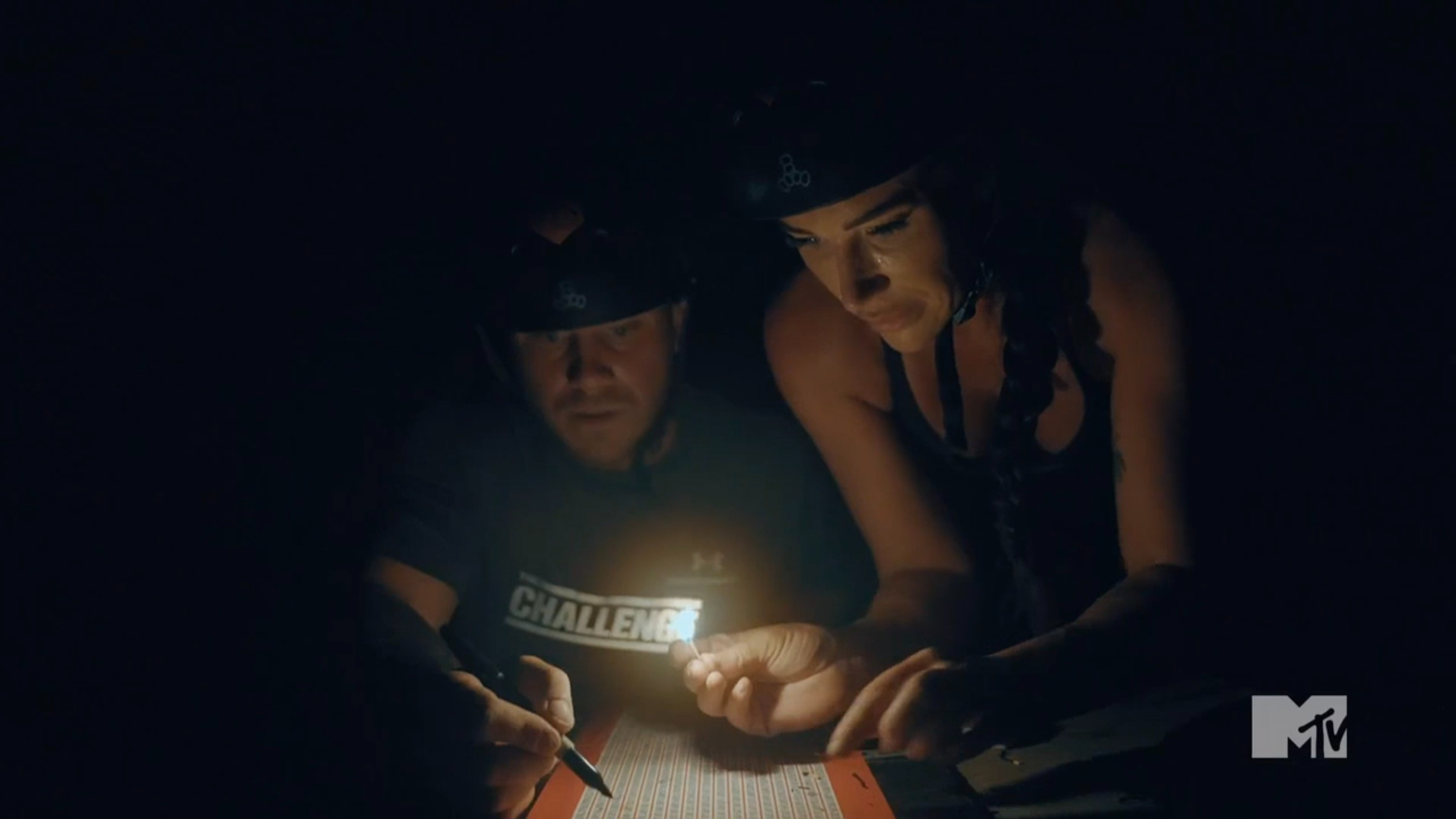 After some paranoia in the house, the cast heads to the daily challenge, Dark Mine. Each team has a book of six matches and they’re heading into a dark, bug-infested cave. Once they’re in there, they’ll hear a series of numbers and they’ll find a game board. They need to mark off the numbers on their board, but the only way to see the board is by lighting the matches. If all six matches run out, the players can exit the cave and get another book. The team that gets the most correct answers the fastest wins. When the teams first enter the cave, they realize TJ didn’t lie: It’s dark. The matches burn quickly, and there are a lot of numbers on the cards. Teams are realizing they’ll need to make multiple trips to get a good score, and Sydney & Turbo find themselves struggling early. The language barrier is making it difficult for Turbo and he’s having a hard time lighting the matches.