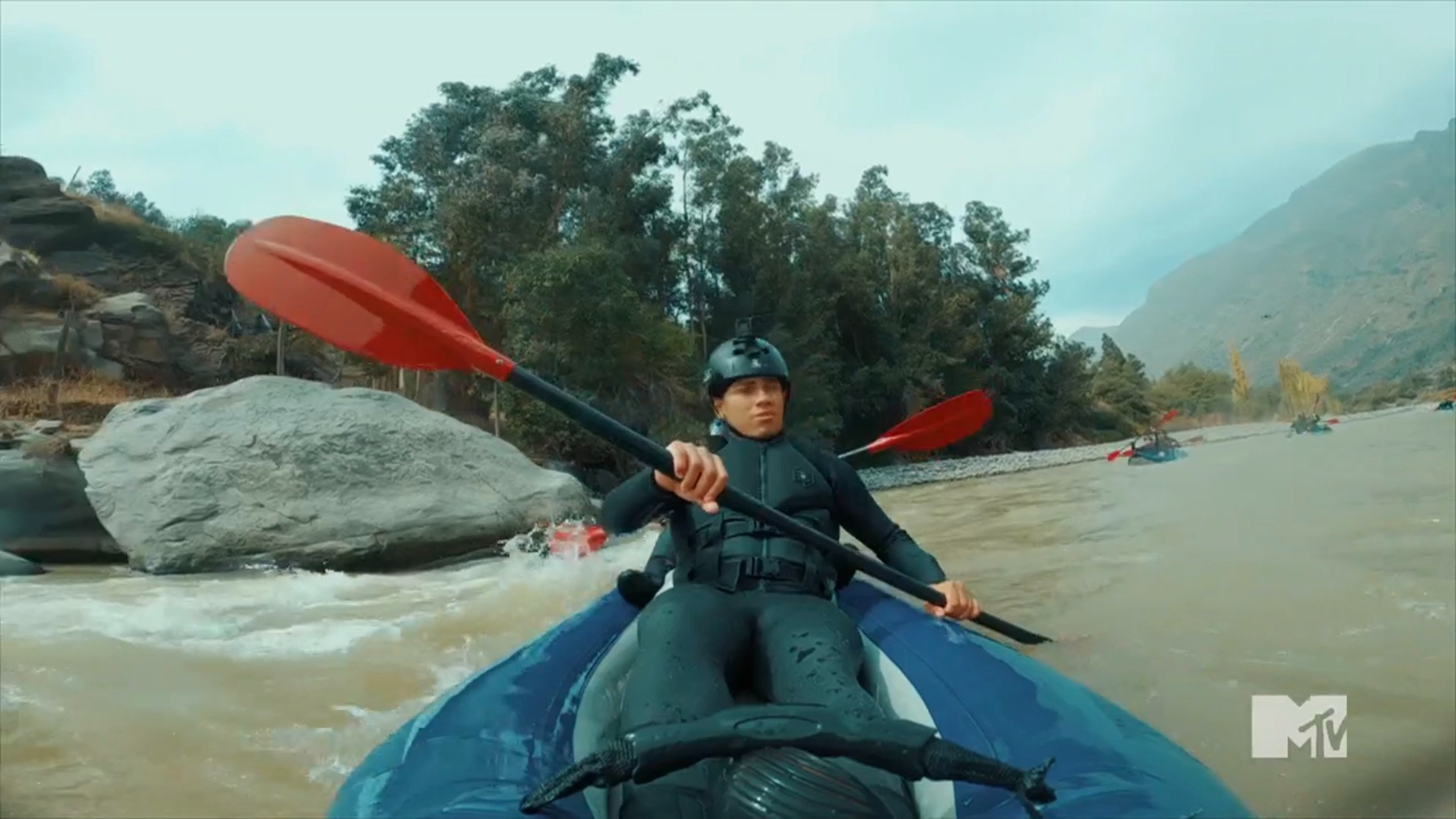 We open the episode with a solid two minutes of watching the final four teams riding a bus until they get out in a field. Then, we watch them stand in the field and wait until they board a helicopter. Eventually, they land and meet TJ somewhere in the Andes. Many of the cast members express their excitement by complaining that it’s cold, but nothing is colder than TJ’s announcement: Finalists competing for their share of $500,000, not $1 million like last season. And only the top three teams get paid: $25,000 for third, $50,000 for second, and the winning team gets $425,000. In this final, the teams will need to complete checkpoints, collect keys, and use them to open a chest. The first team to do this will win the season, and they’ll learn a lot more about their partner in the process because teammates will be tethered together for the whole race.