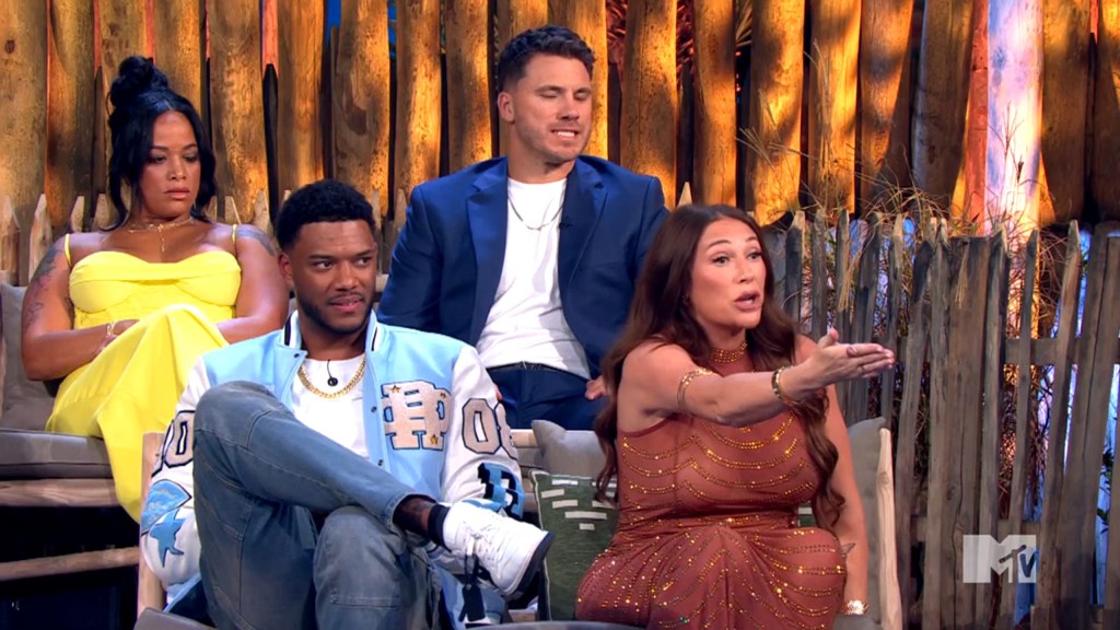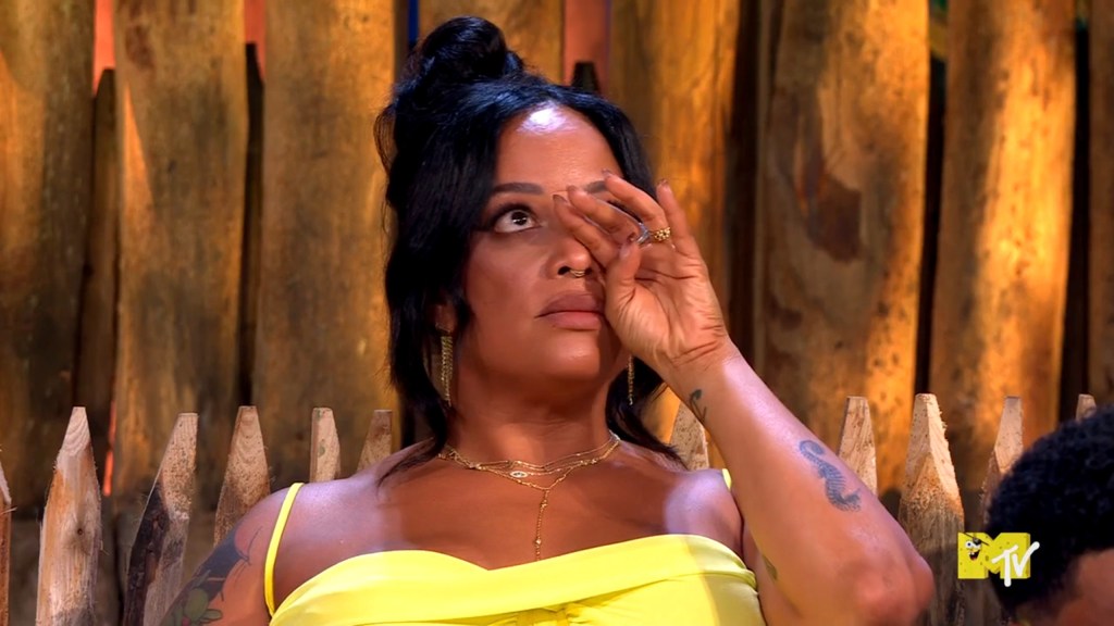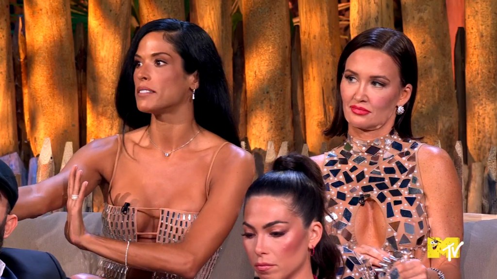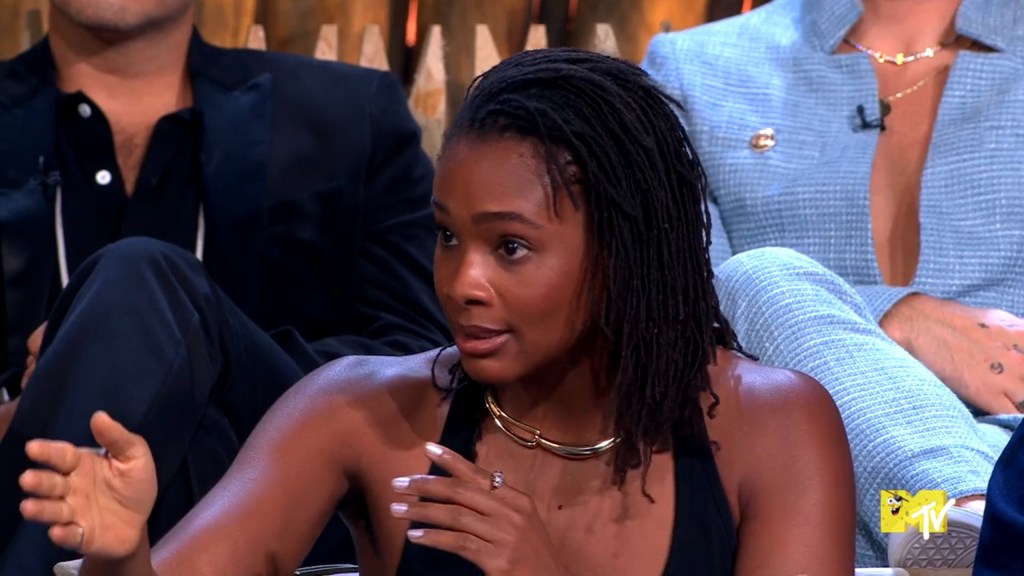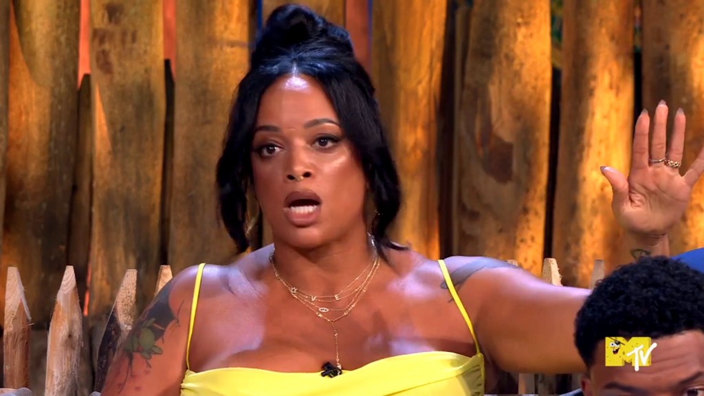 Ashley addresses her comments toward Aneesa, and Ashley says that she was partnered with Aneesa on All Stars Rivals six months prior, and they were both in the worst shape of their lives. Aneesa pushes back, saying she lost 40 pounds in a year, and she’s in her best shape in seasons. Ashley thinks Aneesa is living in delusion, and she’s the type of friend who tells it like it is. Aneesa claims they’re not friends because Ashley mentioned Aneesa’s father in their argument (context: Aneesa’s father recently passed away after battling dementia). Then, Ashley says Aneesa brought up an incident with a stalker — who Aneesa befriended — and claims she’s was willing to make low comments because Aneesa was throwing low blows.