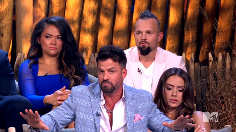 Throughout the reunion, many people call Derek C. a snake, specifically because he betrayed Justin by voting him into the first Arena. Derek claims there were a lot of moving pieces before the first nomination ceremony, and he was worried he’d have to vote in another ally, Cara Maria. At that point, Derek was either going to break bonds with a new friend (Justin) or someone he’s worked with for seasons (Cara Maria). Derek chose to backstab his new friend, but he wishes he talked to Justin before he cast his vote.