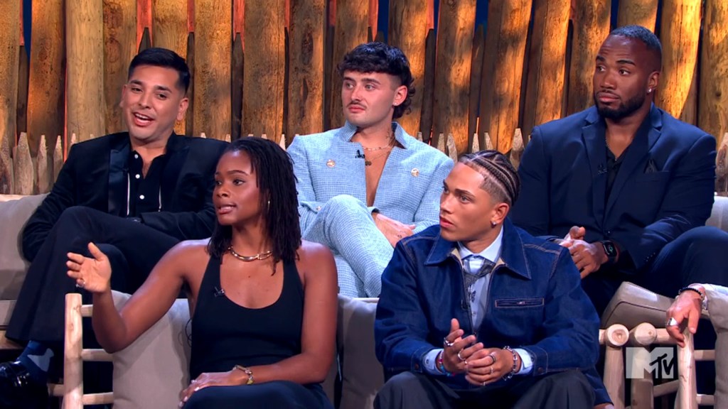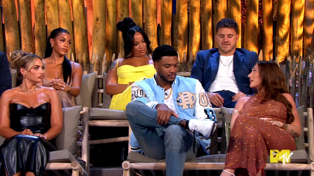 Question 1: Bananas is asked to name the Challenger least likely to return next season. He said Izzy, because the most impressive thing she did was make out with Rogan. Then, Ashley chimed in to say it was likely someone who’s not at the reunion: If they weren’t important enough to be invited to the reunion, they’re probably not interesting enough to return.