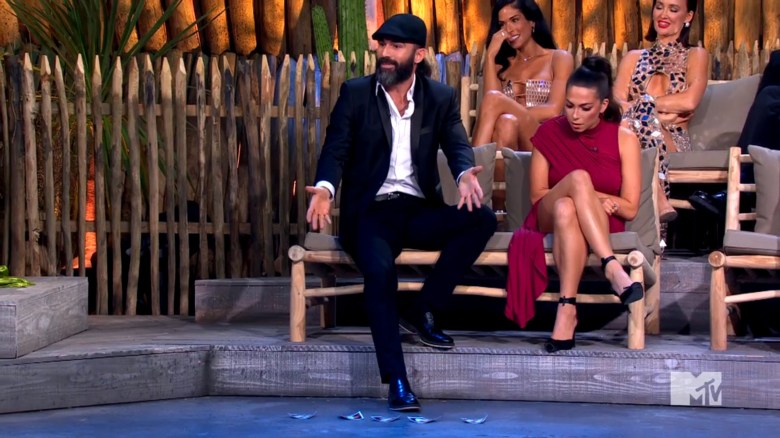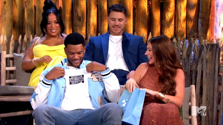 We kick off the reunion by celebrating Olivia & Yeremi’s win and Olivia & Theo’s baby. Olivia is gifted a “future Challenge champ” onesie, and Theo claims that he’s happy that his genetics were part of the winning team. We also get a lot of praise for the New Threats, but really, nothing new here.